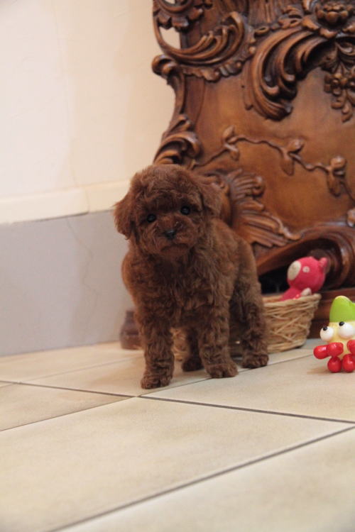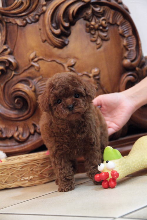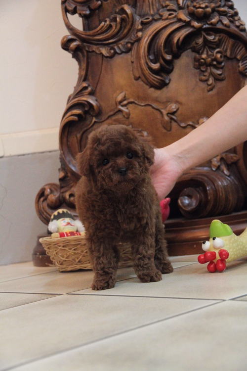 ★小ぶりタイニーサイズの男の子★ 成犬時の予想サイズが2kg位の小ぶりタイニーサイズタイプの男の子です。 代々の家系がティーカップサイズな為、ママ犬も帝王切開での出産となりました。 予想は2.1kgですが、早くにサイズが確定されてしまうこともあります。前回の子達は1.6、1.7kgでした。 犬質がとても高く、種雄やお婿さんとしてもオススメいたします。 毛色がとても濃いディープレッドで、抜群なコートを身にまとっています。 毛量がかなり豊富で、密度があり、毛を掻き分けても地肌が出ない子です。 色素はとても濃く、生まれた時に既に鼻が黒かった子です。 性格が穏やかで、甘えん坊さんのタイプで、人にくっついて居るのが好きな子です。 1回目のワクチン接種と健康診断が終わっており、すぐにお引き渡しが可能です。 飼育の事やトリミングの事など、ご不安な点も、子犬の購入後の手続きの際に一つずつ丁寧にご指導いたしております。 ご安心して、お気軽にお問い合わせ下さいませ。 表示価格は現金特価となっております。 カードでお支払いのお客様は283,500円(税抜262,500円)でございます。 当社で飼育の際に実際に使用しているゲージやトイレなどの生活用品の一式がセットになって37,800円の飼育セットの御用意がございます。 犬種ごとに選択いただくゲージも違いますので、初めての方は、ワンちゃんの購入の際に、同時に飼育セットをお持ち帰りいただく事をオススメしております。 ワンちゃんも使い慣れているので、不安無く新しい生活がスタート出来ると思います。 |