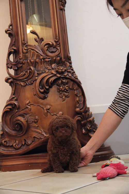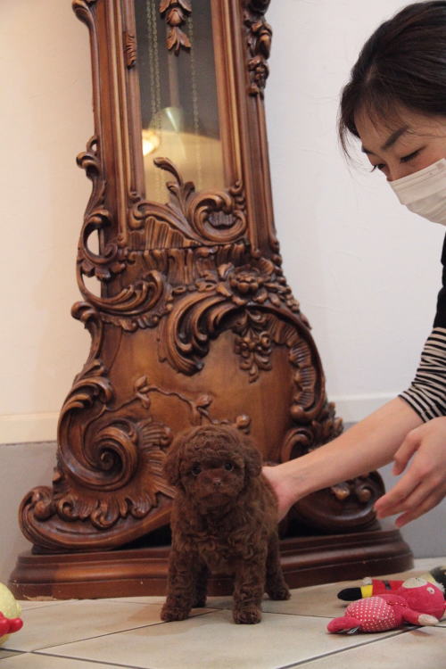 ★まん丸体系と目の女の子★ 成犬時の予想サイズが2.3kg位を予想している小振りタイニーサイズ予想の子です。 こちらの子は、とても可愛い子なのですが、鼻の色素が薄い為、通常価格よりお値段を引き下げております。月齢が浅いうちでの撮影となった為、まだこれから、もう少し濃くなります。 健康上や生活上には一切支障も無いのでご安心頂ければと思います。 顔は丸顔で、目は丸く大きく、マズルがドン詰まりで、顔はかなり可愛い子なので、鼻のお色だけが勿体ない!! 性格の優しい子で、おもちゃで遊ぶ時など、他の子犬達ととても上手に遊んでいます。 毛色がとても濃いディープレッドで、毛量抜群です!! 1回目のワクチン接種と健康診断が終わっており、すぐに引き渡しが可能です。 飼育の事やトリミングの事など、ご不安な点も、子犬の購入後の手続きの際に一つずつ丁寧にご指導いたしております。 ご安心して、お気軽にお問い合わせ下さいませ。 表示価格は現金特価となっております。 カードでお支払いのお客様は260,820円(税抜241,500円)でございます。 当社で飼育の際に実際に使用しているゲージやトイレなどの生活用品の一式がセットになって37,800円の飼育セットの御用意がございます。 犬種ごとに選択いただくゲージも違いますので、初めての方は、ワンちゃんの購入の際に、同時に飼育セットをお持ち帰りいただく事をオススメしております。 ワンちゃんも使い慣れているので、不安無く新しい生活がスタート出来ると思います。 |