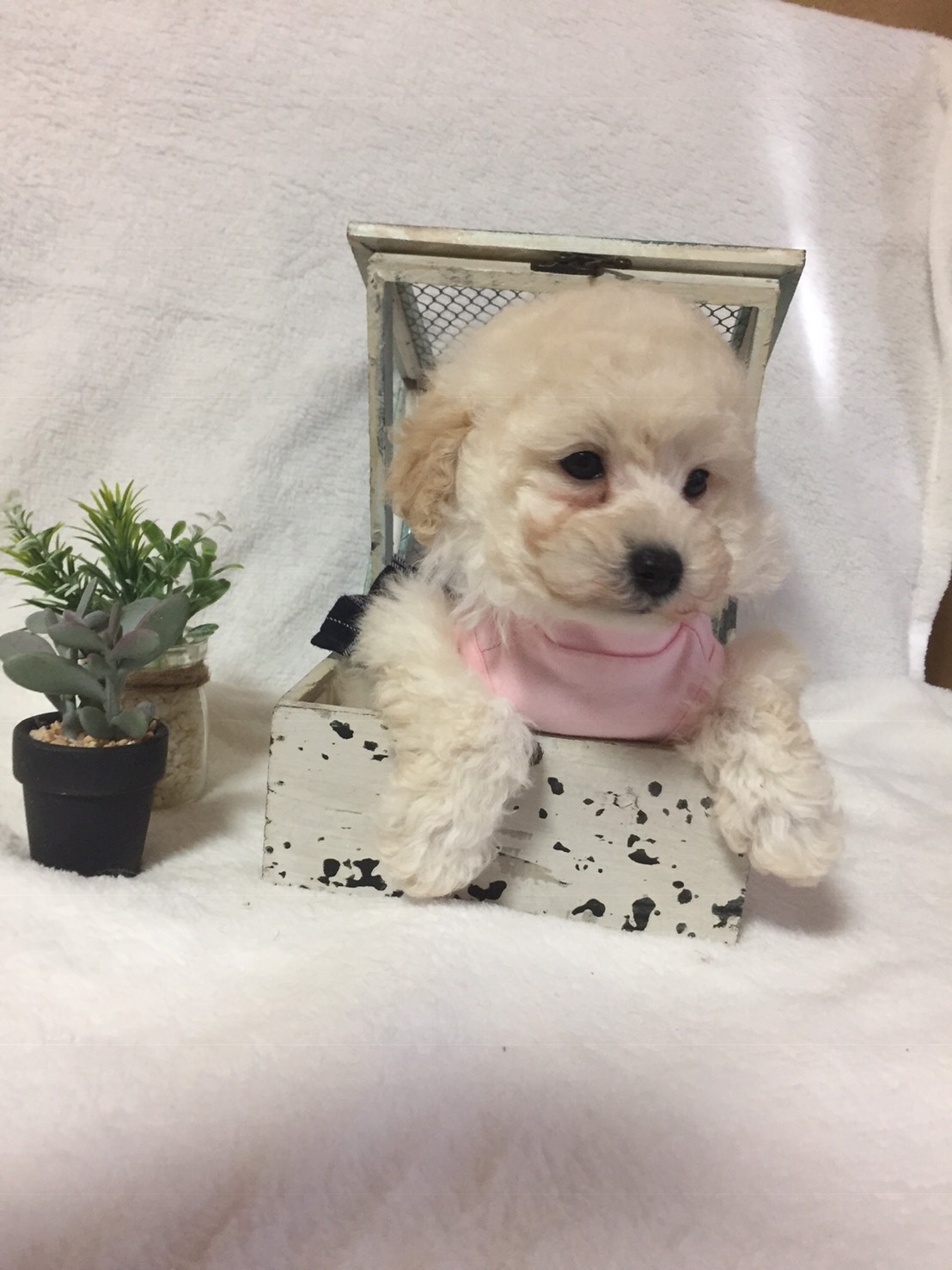 ★タイニーサイズの色白美人さん★ 成犬時の予想サイズが2.8kg位のタイニーサイズ予想の女の子です。 かなり可愛くて、顔のパーツの配置や、目の大きさ、マズルの詰まり具合など完璧です。 毛量がかなりあります!! とてもおっとりしている子で、ふんわりと柔らかい性格をしていますよ。 こちらの子犬は、お友達ブリーダーのブリーディングによるものとなりますので、見学のご予約はお早めにお願い致します。 また、連れてきていただく事と、ブリーダー自身がトリミングをしてくださいますので、興味本位での見学はお断りいたします。お返事もその場でいただき、お見送りの場合には、その日のうちに、子犬をお返ししてあげなければなりませんので、ご理解いただける方のみでお願い致します。 1回目のワクチン接種と健康診断が終わっており、すぐにお引き渡しが可能です。 飼育の事やトリミングの事など、ご不安な点も、子犬の購入後の手続きの際に一つずつ丁寧にご指導いたしております。 ご安心して、お気軽にお問い合わせ下さいませ。 表示価格は現金特価となっております。 カードでお支払いのお客様は294,840円(税抜273,000円)でございます。 当社で飼育の際に実際に使用しているゲージやトイレなどの生活用品の一式がセットになって37,800円の飼育セットの御用意がございます。 犬種ごとに選択いただくゲージも違いますので、初めての方は、ワンちゃんの購入の際に、同時に飼育セットをお持ち帰りいただく事をオススメしております。 ワンちゃんも使い慣れているので、不安無く新しい生活がスタート出来ると思います。 |