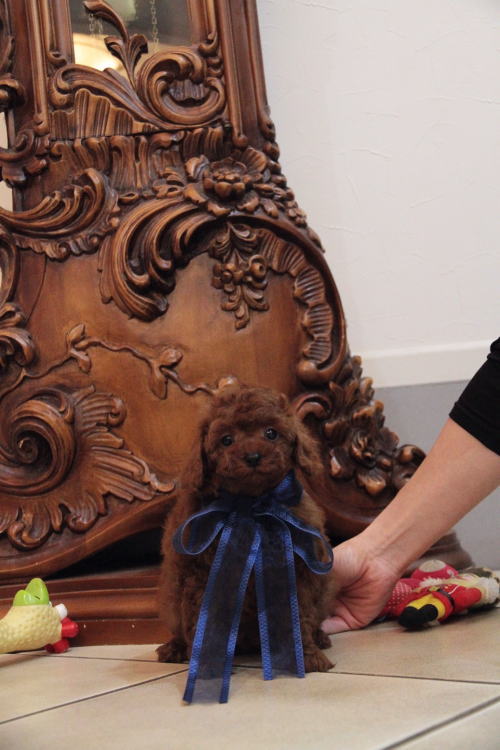 ★ディープレッド・トイサイズ2★ 成犬時の予想サイズが3kg位のしっかりしたトイサイズを予想している男の子です。 毛量が抜群で、毛を掻き分けても地肌の見えないボリューム。 毛色は濃いレンガ色のかなり濃いディープレッドです。 中・大型犬との多頭飼育を希望される方や、小型犬飼育初心者、小さなお子様が居るご家庭、元気一杯のお子様が居る家庭、ランやアウトドアが好きな家庭、ウォーキングが趣味の方に最適です!! しっかりしていて、サイズとしても骨折などの心配が無い事、低血糖の心配が無い事などがございます。 性格は、サイズとは違い、温厚でおっとり、ゆったりとした性格で、穏やかなタイプに育っています。 男の子なので、女の子と違って気の強い面は無く、完全に甘えん坊のべったりさんです♪ 犬質がかなり高いので、一人でブリーディングを営んでいて、小さな種雄だと交配が大変だと思いますので、ショーチャレンジや種雄、お婿さんとしての候補としてもオススメです!! 1回目のワクチン接種と健康診断が終わっており、いつでもお引き渡しが可能です。 飼育の事やトリミングの事など、ご不安な点も、子犬の購入後の手続きの際に一つずつ丁寧にご指導いたしております。 ご安心して、お気軽にお問い合わせ下さいませ。 表示価格は現金特価となっております。 カードでお支払いのお客様は226,800円(税抜210,000円)でございます。 当社で飼育の際に実際に使用しているゲージやトイレなどの生活用品の一式がセットになって37,800円の飼育セットの御用意がございます。 犬種ごとに選択いただくゲージも違いますので、初めての方は、ワンちゃんの購入の際に、同時に飼育セットをお持ち帰りいただく事をオススメしております。 ワンちゃんも使い慣れているので、不安無く飼育を開始いただけると思います。 |