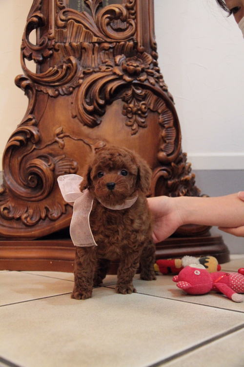 ★本気で気に入ってくださった方に譲ります★ 成犬時の予想サイズ3.5kg位予想の女の子です。 目がクリックリで丸く大きく、顔が全体的にかなり可愛くて、毛量、顔のパーツの配置など、とにかく完璧です!! 毛色はディープレッドで、毛量がかなりあるので、一回り以上大きく見えると思いますが、持ったら分かるギュッと詰めた感じじのトイサイズの女の子です。 当社の台雌として残そうと思っていますが、どうしてもほしい!!という方が居りましたら検討いたします。 1回目のワクチン接種と健康診断が終わっており、すぐにお引き渡しが可能です。 飼育の事やトリミングの事など、ご不安な点も、子犬の購入後の手続きの際に一つずつ丁寧にご指導いたしております。 ご安心して、お気軽にお問い合わせ下さいませ。 表示価格は現金特価となっております。 カードでお支払いのお客様は567,000円(税抜525,000円)でございます。 当社で飼育の際に実際に使用しているゲージやトイレなどの生活用品の一式がセットになって37,800円の飼育セットの御用意がございます。 犬種ごとに選択いただくゲージも違いますので、初めての方は、ワンちゃんの購入の際に、同時に飼育セットをお持ち帰りいただく事をオススメしております。 ワンちゃんも使い慣れているので、不安無く新しい生活がスタート出来ると思います。 |