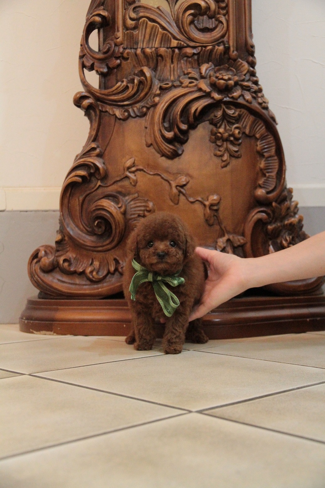 ★衝撃的な可愛さの男の子です★ 成犬時の予想サイズが2.1kg位のムクムクの小振りタイニー前半を予想している男の子です。 毛量が抜群で、毛を掻き分けても地肌の見えないボリューム。 毛色は濃いレンガ色のディープレッドです。 目がとっても丸く大きい子で、マズルは詰まっており、顔回りの毛が伸びたら更に可愛さが引き出されます。 性格は、温厚でおっとり、ゆったりとした性格で、穏やかなタイプに育っています。 かかりつけ獣医師による健康診断で診ていただいてますが、小出ベソがありますが、生涯、手術など必要になるような出べそでは無いとご判断いただいている、本当に小さな出ベソがありますので、その分、若干の低い価格設定にしております。全く問題ありませんので、ご安心くださいませ。診て頂いた病院はワクチン証明書に記載されていますので、ご不安な方は引き続きご利用いただける病院となっております。 1回目のワクチン接種と健康診断が終わっており、いつでもお引き渡しが可能です。 飼育の事やトリミングの事など、ご不安な点も、子犬の購入後の手続きの際に一つずつ丁寧にご指導いたしております。 ご安心して、お気軽にお問い合わせ下さいませ。 表示価格は現金特価となっております。 カードでお支払いのお客様は283,500円(税抜262,500円)でございます。 当社で飼育の際に実際に使用しているゲージやトイレなどの生活用品の一式がセットになって37,800円の飼育セットの御用意がございます。 犬種ごとに選択いただくゲージも違いますので、初めての方は、ワンちゃんの購入の際に、同時に飼育セットをお持ち帰りいただく事をオススメしております。 ワンちゃんも使い慣れているので、不安無く飼育を開始いただけると思います。 |