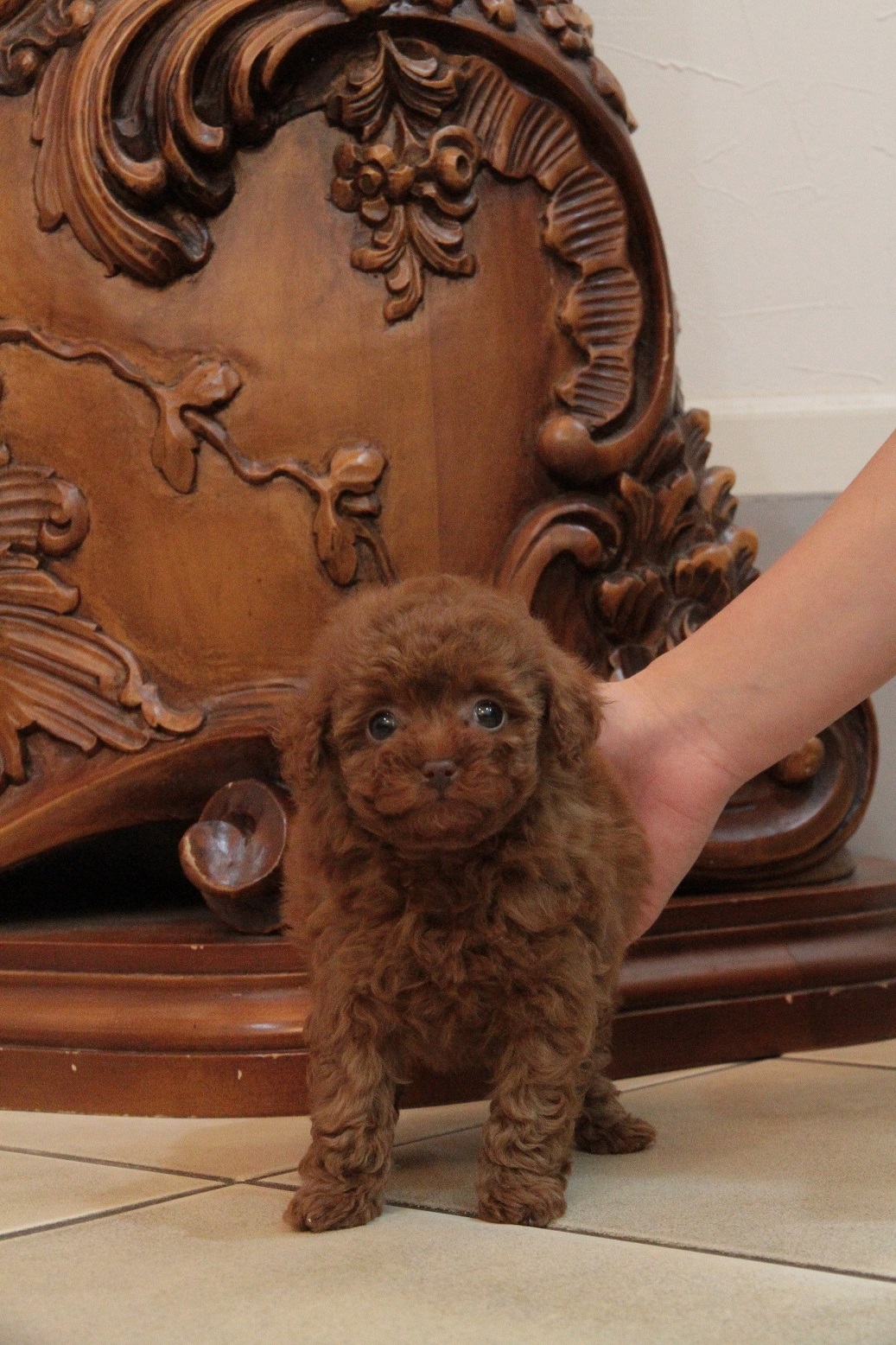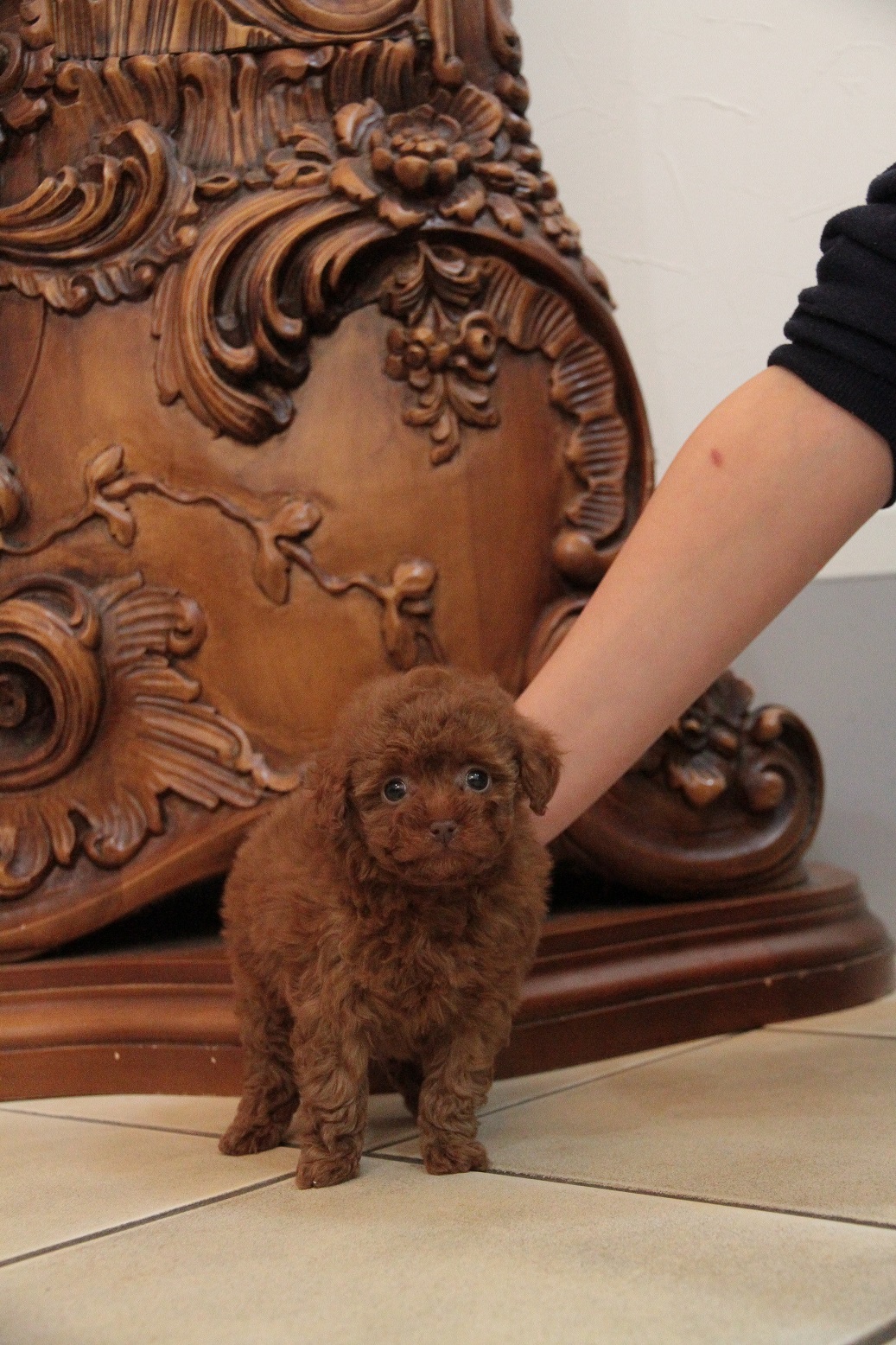 ★完全に小さいティーカップサイズの女の子★ 成犬時の予想サイズが1.2kg位のマイクロティーカップ~ティーカップサイズの女の子です。 先日販売した子犬と、あまりにもソックリなので、ご参考までに、右下にその子の写メも掲載しておきます。引き渡しした時の写メです。 顔がとっても可愛くて、目がクリクリしていて大きく、マズルはビックリする位に猫の口元の様にドン詰まりです。 こちらの子は、とても可愛い子なのですが、鼻の色素が薄く、レバーな為(レバーと言ってもピンクでは無く、チョコレート色)通常価格よりお値段を引き下げております。月齢が浅いうちでの撮影となった為、まだこれから、少しずつ濃くなりますが、こげ茶色の鼻と想像頂ければと思います。 健康上や生活上には一切支障も無いのでご安心頂ければと思います。 かかりつけ獣医師による健康診断で診ていただいてますが、小出ベソがありますが、生涯、手術など必要になるような出べそでは無いとご判断いただいている、本当に小さな出ベソがありますので、その分、若干の低い価格設定にしております。全く問題ありませんので、ご安心くださいませ。診て頂いた病院はワクチン証明書に記載されていますので、ご不安な方は引き続きご利用いただける病院となっております。 その点を踏まえて、当初掲載より価格を引き下げました。 オモチャが意外と好きで一人遊びがとても上手な子です。 人や犬に対してとても優しく接する事の出来る子です。 兄弟犬と共に、とても仲良く生活できております。 1回目のワクチン接種と健康診断が終わっており、すぐにお引き渡しが可能です。 飼育の事やトリミングの事など、ご不安な点も、子犬の購入後の手続きの際に一つずつ丁寧にご指導いたしております。 ご安心して、お気軽にお問い合わせ下さいませ。 表示価格は現金特価となっております。 カードでお支払いのお客様は396,900円(税抜367,500円)でございます。 当社で飼育の際に実際に使用しているゲージやトイレなどの生活用品の一式がセットになって37,800円の飼育セットの御用意がございます。 犬種ごとに選択いただくゲージも違いますので、初めての方は、ワンちゃんの購入の際に、同時に飼育セットをお持ち帰りいただく事をオススメしております。 ワンちゃんも使い慣れているので、不安無く新しい生活がスタート出来ると思います。 |