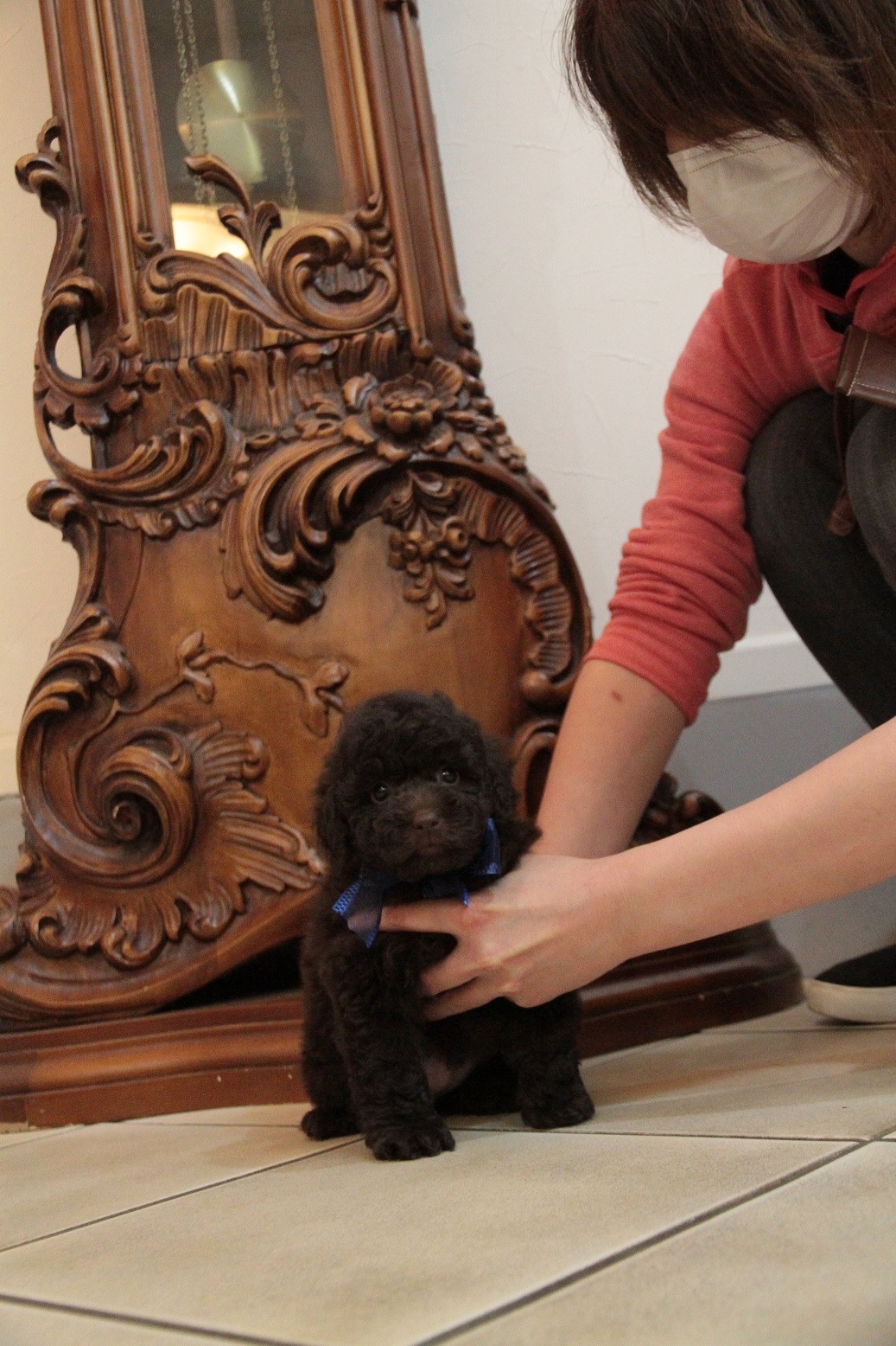 ★フレンドリーで性格の良い男の子★ 成犬時の予想サイズが2.8kg位のタイニーサイズ予想の男の子です。 差し毛やミスカラーはありません。 色味はとても濃い綺麗なビターブラウンです。 フレンドリーな性格の子で、我が家の子供達にとてもよく懐いて、子供が好きな様子です。 オモチャなどにも興味がある子です。 目がクリクリしていて毛量が抜群なので、カットもとても楽しめるタイプです♪ 健康診断とワクチンが済んでおり、すぐにお引き渡し可能です。 飼育の事やトリミングの事など、ご不安な点も、子犬の購入後の手続きの際に一つずつ丁寧にご指導いたしております。 ご安心して、お気軽にお問い合わせ下さいませ。 表示価格は現金特価となっております。 カードでお支払いのお客様は204,120円(税抜189,000円)でございます。 当社で飼育の際に実際に使用しているゲージやトイレなどの生活用品の一式がセットになって37,800円の飼育セットの御用意がございます。 犬種ごとに選択いただくゲージも違いますので、初めての方は、ワンちゃんの購入の際に、同時に飼育セットをお持ち帰りいただく事をオススメしております。 ワンちゃんも使い慣れているので、不安無く新しい生活がスタート出来ると思います。 |
