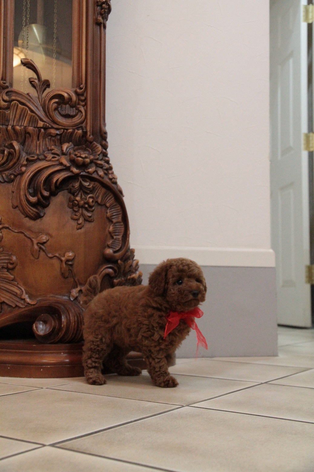★女の子に見えるめちゃくちゃ可愛い男の子★ 成犬時の予想サイズが3kg位のトイサイズを予想している男の子です。 毛量が抜群で、毛を掻き分けても地肌の見えないボリューム。 毛色は濃いレンガ色のディープレッドです。 目がとっても丸く大きい子で、マズルは詰まっていて、とってもかわいいお顔をしています!! 性格は、温厚でおっとり、ゆったりとした性格で、穏やかなタイプに育っています。 かかりつけ獣医師による健康診断で診ていただいてますが、小出ベソがありますが、生涯、手術など必要になるような出べそでは無いとご判断いただいている、本当に小さな出ベソがありますので、その分、若干の低い価格設定にしております。全く問題ありませんので、ご安心くださいませ。診て頂いた病院はワクチン証明書に記載されていますので、ご不安な方は引き続きご利用いただける病院となっております。 1回目のワクチン接種と健康診断が終わっており、いつでもお引き渡しが可能です。 飼育の事やトリミングの事など、ご不安な点も、子犬の購入後の手続きの際に一つずつ丁寧にご指導いたしております。 ご安心して、お気軽にお問い合わせ下さいませ。 表示価格は現金特価となっております。 カードでお支払いのお客様は283,500円(税抜262 ,500円)でございます。 当社で飼育の際に実際に使用しているゲージやトイレなどの生活用品の一式がセットになって37,800円の飼育セットの御用意がございます。 犬種ごとに選択いただくゲージも違いますので、初めての方は、ワンちゃんの購入の際に、同時に飼育セットをお持ち帰りいただく事をオススメしております。 ワンちゃんも使い慣れているので、不安無く飼育を開始いただけると思います。 |