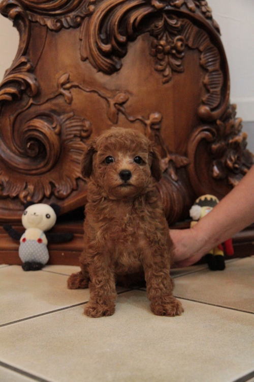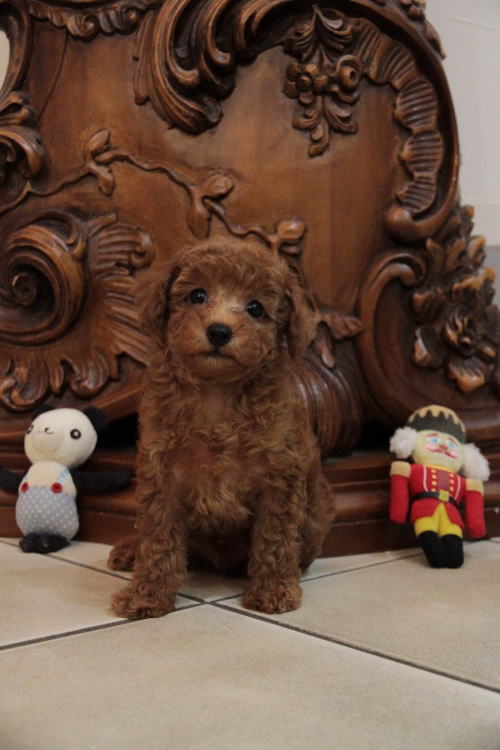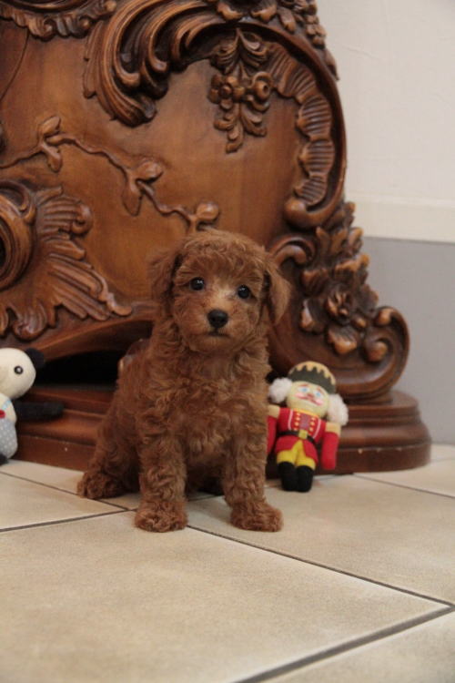 ★優しい色味のタイニーサイズ君★ 成犬時の予想サイズが2.8kgのタイニーサイズタイプの男の子です。 兄弟の中で一番おっとりしていて、雰囲気そのままな性格をしています。 とてもやさしい子です!! 色味が濃いレッドではなく、優しい色味で、雰囲気がとても穏やかで素敵です!! こちらの子犬は、お友達ブリーダーのお宅で生まれている子の為、見学のご希望はお早めにお願い致します。 また、見学前日に遠方から届けてくださるので、犬との触れ合い感覚でいらっしゃる方はご遠慮下さいませ。 1回目のワクチン接種と健康診断が終わっており、すぐにお引き渡しが可能です。 飼育の事やトリミングの事など、ご不安な点も、子犬の購入後の手続きの際に一つずつ丁寧にご指導いたしております。 ご安心して、お気軽にお問い合わせ下さいませ。 表示価格は現金特価となっております。 カードでお支払いのお客様は260,820円(税抜241,500円)でございます。 当社で飼育の際に実際に使用しているゲージやトイレなどの生活用品の一式がセットになって37,800円の飼育セットの御用意がございます。 犬種ごとに選択いただくゲージも違いますので、初めての方は、ワンちゃんの購入の際に、同時に飼育セットをお持ち帰りいただく事をオススメしております。 ワンちゃんも使い慣れているので、不安無く新しい生活がスタート出来ると思います。 |