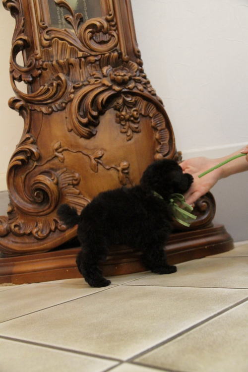 ★光沢のある新車の様なブラックカラー★ 成犬時の予想サイズが2.5kg位のタイニーサイズタイプの男の子です。 毛質がかなり良く、黒光りしていて、ピカピカの新車の様です。 毛量もとっても豊富で、まりもが動いているかの様です♪ 性格がとっっっても温厚で優しい子で、他のチビッ子達と比べると一番穏やかで良い子です!! 黒い子はなかなか掲載が無いので、お問い合わせが重複しやすいので、気になる方はお気軽にお早めにお問い合わせをお寄せくださいネ。 健康診断とワクチン接種が終わっており、10月19日からお引き渡しが可能です。 飼育の事やトリミングの事など、ご不安な点も、子犬の購入後の手続きの際に一つずつ丁寧にご指導いたしております。 ご安心して、お気軽にお問い合わせ下さいませ。 表示価格は現金特価となっております。 カードでお支払いのお客様は173,250円(税抜157,500円)でございます。 当社で飼育の際に実際に使用しているゲージやトイレなどの生活用品の一式がセットになって37,800円の飼育セットの御用意がございます。 犬種ごとに選択いただくゲージも違いますので、初めての方は、ワンちゃんの購入の際に、同時に飼育セットをお持ち帰りいただく事をオススメしております。 ワンちゃんも使い慣れているので、不安無く新しい生活がスタート出来ると思います。 |