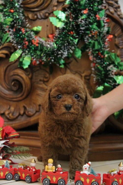 ★衝撃的な可愛さの男の子です★ 成犬時の予想サイズが2.1kg位のムクムクの小振りタイニー前半を予想している男の子です。 毛量が抜群で、毛を掻き分けても地肌の見えないボリューム。 毛色は濃いレンガ色のディープレッドです。 目がとっても丸く大きい子で、マズルは詰まっており、顔回りの毛が伸びたら更に可愛さが引き出されます。 口周り、顔周りの毛が一番遅く伸びるので、一般の方には丸く可愛らしいのが、なかなか伝わらないと思いますが、かなり可愛い顔をしている子です!! 目が、加工写真か!?って程にキラキラして撮れて、私達もビックリしていますが、一切の加工はしていません!!! 性格は、温厚でおっとり、ゆったりとした性格で、穏やかなタイプに育っています。 かかりつけ獣医師による健康診断で診ていただいてますが、小出ベソがありますが、生涯、手術など必要になるような出べそでは無いとご判断いただいている、本当に小さな出ベソがありますので、その分、若干の低い価格設定にしております。全く問題ありませんので、ご安心くださいませ。診て頂いた病院はワクチン証明書に記載されていますので、ご不安な方は引き続きご利用いただける病院となっております。 1回目のワクチン接種と健康診断が終わっており、いつでもお引き渡しが可能です。 飼育の事やトリミングの事など、ご不安な点も、子犬の購入後の手続きの際に一つずつ丁寧にご指導いたしております。 ご安心して、お気軽にお問い合わせ下さいませ。 表示価格は現金特価となっております。 カードでお支払いのお客様は288,750円(税抜262,500円)でございます。 当社で飼育の際に実際に使用しているゲージやトイレなどの生活用品の一式がセットになって37,800円の飼育セットの御用意がございます。 犬種ごとに選択いただくゲージも違いますので、初めての方は、ワンちゃんの購入の際に、同時に飼育セットをお持ち帰りいただく事をオススメしております。 ワンちゃんも使い慣れているので、不安無く飼育を開始いただけると思います。 |