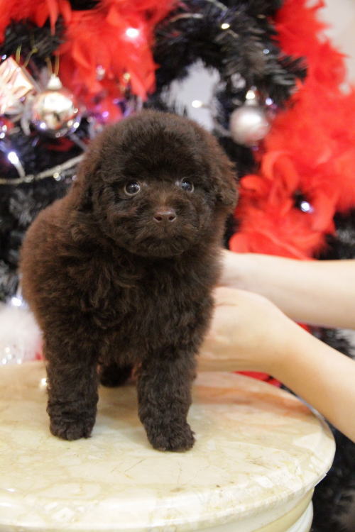 ★ティーカップサイズのブラウン王子★ 成犬時の予想サイズが1.8kg位のティーカップサイズ予想の男の子です。 サイズはとても小さいです。プクプクしています♪ 差し毛やミスカラーはありません。 お写真では、顔の写りを重視し、カメラの明るさ設定を明るさを高めに設定している為、鼻の色や毛色が明るく見えますが、ビターブラウンのカラーで、鼻も黒に近いので実物でご確認くださいませ。 フレンドリーな性格の子で、他の子犬達ととても仲良く遊んで生活しています♪ 目がクリクリしていて、顔のとても可愛い子で、ゴリラ顔では決してありません。どちらかと言うとリス猿の様な可愛らしい顔つきのタイプです。 健康診断とワクチンが済んでおり、すぐにお引き渡し可能です。 飼育の事やトリミングの事など、ご不安な点も、子犬の購入後の手続きの際に一つずつ丁寧にご指導いたしております。 ご安心して、お気軽にお問い合わせ下さいませ。 表示価格は現金特価となっております。 カードでお支払いのお客様は231,000円(税抜210,000円)でございます。 当社で飼育の際に実際に使用しているゲージやトイレなどの生活用品の一式がセットになって37,800円の飼育セットの御用意がございます。 犬種ごとに選択いただくゲージも違いますので、初めての方は、ワンちゃんの購入の際に、同時に飼育セットをお持ち帰りいただく事をオススメしております。 ワンちゃんも使い慣れているので、不安無く新しい生活がスタート出来ると思います。 |