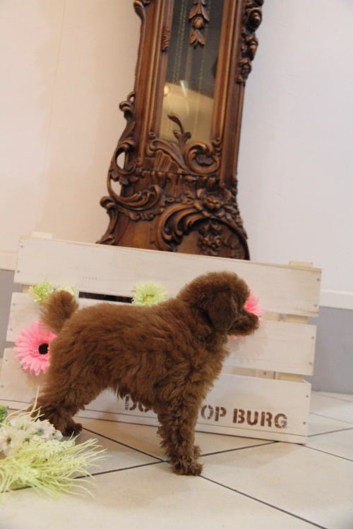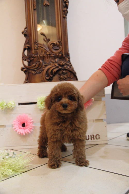 ★色が濃くて可愛らしい男の子です★ 成犬時の予想サイズが2.6kg位のムクムクのタイニーサイズを予想している男の子です。 毛量が抜群で、毛を掻き分けても地肌の見えないボリューム。 毛色は濃いレンガ色のディープレッドです。 鼻やアイラインなど、色素がとても濃い黒です。 人懐こい子で、尻尾をピコピコ振ってスタッフに駆け寄る姿がとてもかわいいです!! 欠点やミスカラー等はありません。 1回目のワクチン接種と健康診断が終わっており、いつでもお引き渡しが可能です。 飼育の事やトリミングの事など、ご不安な点も、子犬の購入後の手続きの際に一つずつ丁寧にご指導いたしております。 ご安心して、お気軽にお問い合わせ下さいませ。 表示価格は現金特価となっております。 カードでお支払いのお客様は254,100円(税抜231,000円)でございます。 当社で飼育の際に実際に使用しているゲージやトイレなどの生活用品の一式がセットになって37,800円の飼育セットの御用意がございます。 犬種ごとに選択いただくゲージも違いますので、初めての方は、ワンちゃんの購入の際に、同時に飼育セットをお持ち帰りいただく事をオススメしております。 ワンちゃんも使い慣れているので、不安無く飼育を開始いただけると思います。 |