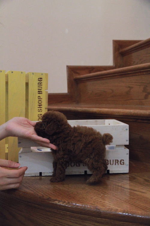 ★毛量豊富で可愛いディープレッドちゃん★ 実物の色味はかなり濃いレッドです(o^―^o) 成犬時の予想サイズ3kg位のトイサイズ前半タイプで抱っこした時に丁度良いサイズ感の女の子です。 目がクリックリで丸く大きく、顔が全体的にかなり可愛くて、毛量、顔のパーツの配置など、とにかく完璧です!! 毛色はディープレッドで、毛量がかなりあるので、トリミングスタイルの楽しめる子です。 鼻の脇の色素がまだ上がっていない部分があるのと、首元に多少の差し毛がある為、その分価格を下げております。 1回目のワクチン接種と健康診断が終わっており、すぐにお引き渡しが可能です。 飼育の事やトリミングの事など、ご不安な点も、子犬の購入後の手続きの際に一つずつ丁寧にご指導いたしております。 ご安心して、お気軽にお問い合わせ下さいませ。 表示価格は現金特価となっております。 カードでお支払いのお客様は519,750円(税抜472,500円)でございます。 当社で飼育の際に実際に使用しているゲージやトイレなどの生活用品の一式がセットになって37,800円の飼育セットの御用意がございます。 犬種ごとに選択いただくゲージも違いますので、初めての方は、ワンちゃんの購入の際に、同時に飼育セットをお持ち帰りいただく事をオススメしております。 ワンちゃんも使い慣れているので、不安無く新しい生活がスタート出来ると思います。 |