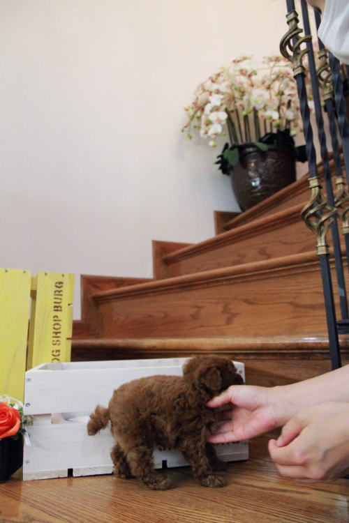 ★衝撃!!ディープレッド!!ティーカップ!!激カワ!!★ 成犬時の予想サイズが1.8kg位のティーカップサイズでコロコロしたタイプに仕上がりそうな子です。 顔が超絶可愛くて、目は真ん丸でクリックリ、マズルはビックリする位に詰まっています。 毛量がとっても豊富で、毛質はかなり良い柔らかな毛質をしています。 家系が、目が大きく丸い家系なのと、まだ瞼の皮膚に余裕がありますから、これから一か月かけて更にクリクリします。 目は生後20日近くまで少しずつ開いてくるものなのですが、凡そ生後90日程まで開きます。 人間が中学までは目が腫れぼったいのと同じです。少しずつ目もできていきます。 抱っこが大好き。 ママ犬がとっても面倒見が良くて、お育ちがとても良い雰囲気で育っています。 ディープレッド、顔激カワ、小さい、毛量抜群、性格可愛い、欠点ミスカラー無し!!!! もー言うこと無しです!!! 1回目のワクチン接種と健康診断が終わっており、すぐにお引き渡しが可能です。 飼育の事やトリミングの事など、ご不安な点も、子犬の購入後の手続きの際に一つずつ丁寧にご指導いたしております。 ご安心して、お気軽にお問い合わせ下さいませ。 表示価格は現金特価となっております。 カードでお支払いのお客様は785,400円(税抜714,000円)でございます。 当社で飼育の際に実際に使用しているゲージやトイレなどの生活用品の一式がセットになって37,800円の飼育セットの御用意がございます。 犬種ごとに選択いただくゲージも違いますので、初めての方は、ワンちゃんの購入の際に、同時に飼育セットをお持ち帰りいただく事をオススメしております。 ワンちゃんも使い慣れているので、不安無く新しい生活がスタート出来ると思います。 |