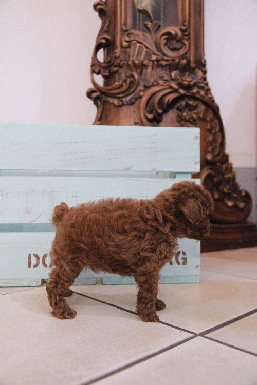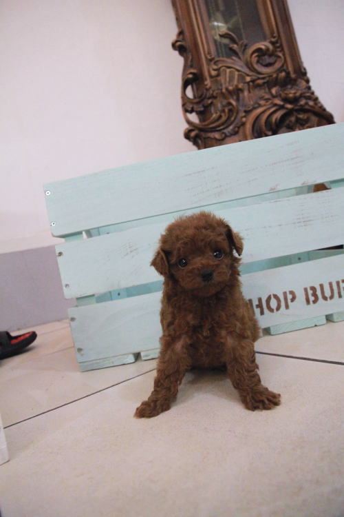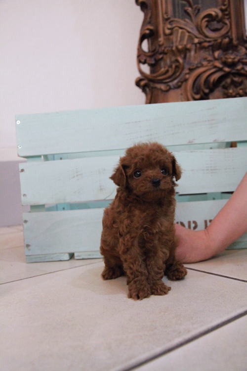 ★ディープレッドのマイクロティーカップちゃん★ 両親PRA検査クリア!! 成犬時の予想サイズが1.2kg位のティーカップサイズに仕上がりそうです。 顔が丸顔でとっても可愛くて、目がクリクリしていて大きく、マズルがとても詰まっている子です。 体型も真ん丸くズングリムックリとしていて可愛らしい形をしています。 毛色がかなり濃いディープレッドで、毛量は素晴らしく抜群にあります。 1回目のワクチン接種と健康診断が完了しており、いつでもお引渡し可能です。 飼育の事やトリミングの事など、ご不安な点も、子犬の購入後の手続きの際に一つずつ丁寧にご指導いたしております。 ご安心して、お気軽にお問い合わせ下さいませ。 表示価格は現金特価となっております。 カードでお支払いのお客様は693,000円(税抜630,000円)でございます。 当社で飼育の際に実際に使用しているゲージやトイレなどの生活用品の一式がセットになって37,800円の飼育セットの御用意がございます。 犬種ごとに選択いただくゲージも違いますので、初めての方は、ワンちゃんの購入の際に、同時に飼育セットをお持ち帰りいただく事をオススメしております。 ワンちゃんも使い慣れているので、不安無く新しい生活がスタート出来ると思います。 |