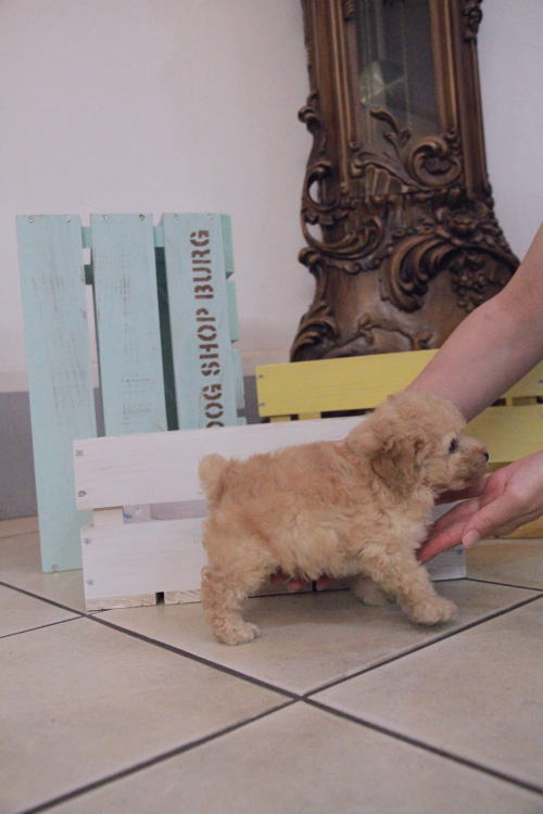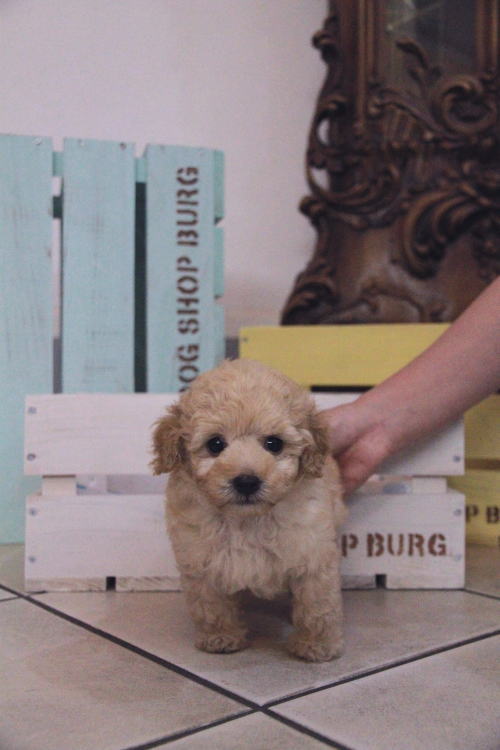 ★めちゃくちゃ可愛いクリームの男の子★ 成犬時の予想サイズが2.5kgのタイニーサイズタイプの男の子です。 毛色は数が少ないクリーム色で、目が大きく丸く真ん丸なので、女の子に見えるほど可愛らしい顔つきをしています♪ 穏やかで兄妹喧嘩などは全く無く、とても人懐こく、性格のとても良い子です。 お引渡しは7月12日より可能です。 ご見学で引き渡し前による事前ご予約を半金でお受けできます。 飼育の事やトリミングの事など、ご不安な点も、子犬の購入後の手続きの際に一つずつ丁寧にご指導いたしております。 ご安心して、お気軽にお問い合わせ下さいませ。 表示価格は現金特価となっております。 カードでお支払いのお客様は462,000円(税抜420,000円)でございます。 当社で飼育の際に実際に使用しているゲージやトイレなどの生活用品の一式がセットになって37,800円の飼育セットの御用意がございます。 犬種ごとに選択いただくゲージも違いますので、初めての方は、ワンちゃんの購入の際に、同時に飼育セットをお持ち帰りいただく事をオススメしております。 ワンちゃんも使い慣れているので、不安無く新しい生活がスタート出来ると思います。 |