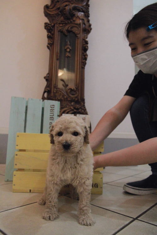 ★スタンプー クリームカラーのイケメン★ 両親PRAクリア!! マズルが太く詰まっているタイプで、顔が全体的にかなり可愛くて、毛量、顔のパーツの配置など、とにかく完璧!! 毛量が多く、気持ちの良い触り心地の毛質です。 血統、犬質がとても良く、綺麗でカッコいいスタンプーですが、顔は愛らしい可愛さのある作りとなっております。 体のバランス構成が良く、圧巻な成犬に育つでしょう! お引き渡しは7月13日以降となりますが、見学、購入予約を先行してお受けしております。 飼育の事やトリミングの事など、ご不安な点も、子犬の購入後の手続きの際に一つずつ丁寧にご指導いたしております。 ご安心して、お気軽にお問い合わせ下さいませ。 表示価格は現金特価となっております。 カードでお支払いのお客様は288,750円(税抜262,500円)でございます。 |