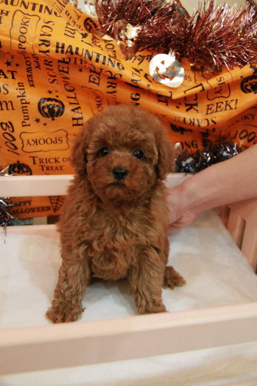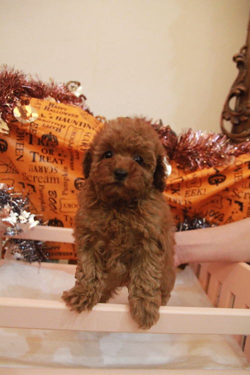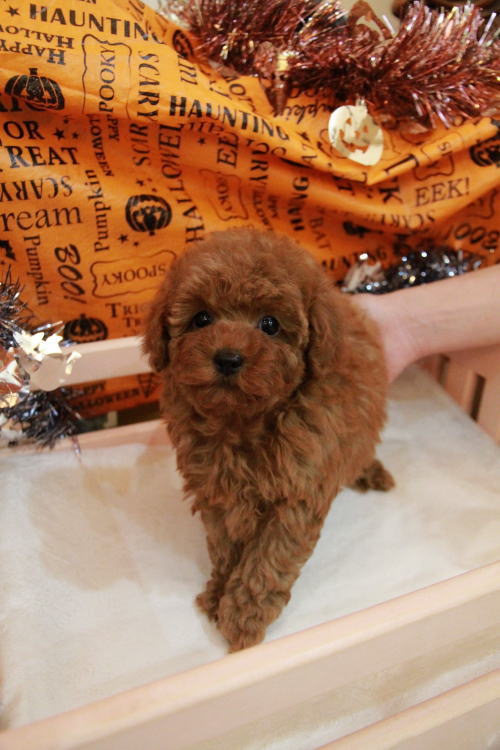 ★毛量豊富のベビーフェイスな女の子★ ※写真2枚を更新しました 家系が全てPRAクリアです!! 成長が緩やかで、成犬時の予想サイズ1.8kg位のティーカップサイズタイプで収まりそうな女の子です。 目がクリックリで丸く大きく、顔が全体的にかなり可愛くて、毛量、顔のパーツの配置など、とにかく完璧です!! 毛量がかなりあるので、トリミングスタイルの楽しめる子です。 犬の質も良く、血統も良く、顔が可愛く、癒し系な女の子です。 毛色は濁りの無い綺麗なレッドカラーです!! 1回目のワクチン接種と健康診断が終わっており、すぐにお引き渡しが可能です。 飼育の事やトリミングの事など、ご不安な点も、子犬の購入後の手続きの際に一つずつ丁寧にご指導いたしております。 ご安心して、お気軽にお問い合わせ下さいませ。 表示価格は現金特価となっております。 カードでお支払いのお客様は462,000円(税抜420,000円)でございます。 当社で飼育の際に実際に使用しているゲージやトイレなどの生活用品の一式がセットになって37,800円の飼育セットの御用意がございます。 犬種ごとに選択いただくゲージも違いますので、初めての方は、ワンちゃんの購入の際に、同時に飼育セットをお持ち帰りいただく事をオススメしております。 ワンちゃんも使い慣れているので、不安無く新しい生活がスタート出来ると思います。 |