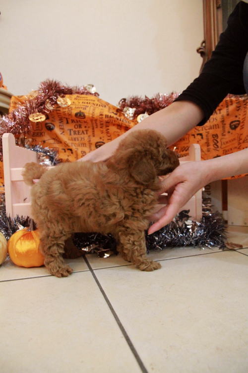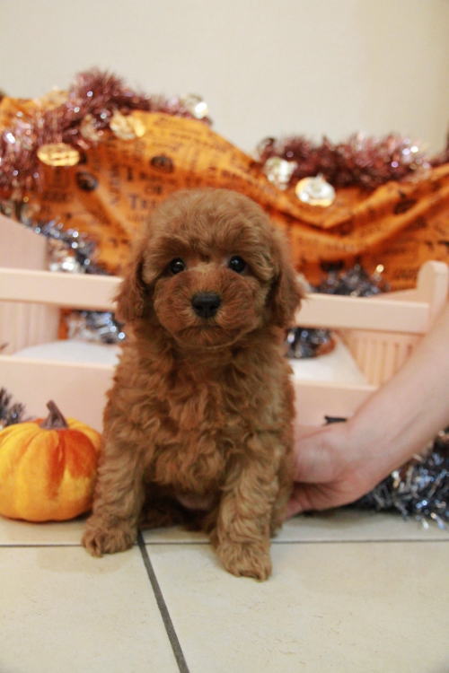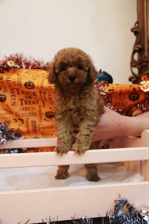 ★毛量豊富で遊び大好きな女の子★ ※写真2枚を更新しました 家系が全てPRAクリアです!! 成犬時の予想サイズ2.8kg位のタイナーサイズタイプで抱っこした時に丁度良いサイズ感の女の子です。 目がクリックリで丸く大きく、顔が全体的にかなり可愛くて、毛量、顔のパーツの配置など、とにかく完璧です!! 毛量がかなりあるので、トリミングスタイルの楽しめる子です。 姉妹犬ととても優しく上手に遊ぶことができる子で、他のパピー犬とも仲良く出来る子です♪ 1回目のワクチン接種と健康診断が終わっており、すぐにお引き渡しが可能です。 飼育の事やトリミングの事など、ご不安な点も、子犬の購入後の手続きの際に一つずつ丁寧にご指導いたしております。 ご安心して、お気軽にお問い合わせ下さいませ。 表示価格は現金特価となっております。 カードでお支払いのお客様は462,000円(税抜420,000円)でございます。 当社で飼育の際に実際に使用しているゲージやトイレなどの生活用品の一式がセットになって37,800円の飼育セットの御用意がございます。 犬種ごとに選択いただくゲージも違いますので、初めての方は、ワンちゃんの購入の際に、同時に飼育セットをお持ち帰りいただく事をオススメしております。 ワンちゃんも使い慣れているので、不安無く新しい生活がスタート出来ると思います。 |
