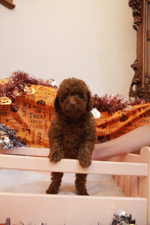 ★まん丸な目が愛らしいティーカップちゃん★ 家系が全てPRAクリアです!! 成犬時の予想サイズが1.7kg位を予想しているティーカップサイズ予想の子です。 こちらの子は、とても可愛い子なのですが、鼻の色素が薄い為、通常価格よりお値段を引き下げております。月齢が浅いうちでの撮影となった為、まだこれから、もう少し濃くなります。 健康上や生活上には一切支障も無いのでご安心頂ければと思います。 顔は丸顔で、目は丸く大きく、マズルがドン詰まりで、顔はかなり可愛い子なので、鼻のお色だけが勿体ない!! 性格の優しい子で、おもちゃで遊ぶ時など、他の子犬達ととても上手に遊んでいます。 毛色がとても濃いディープレッドで、毛量抜群です!! 1回目のワクチン接種と健康診断が終わっており、すぐに引き渡しが可能です。 飼育の事やトリミングの事など、ご不安な点も、子犬の購入後の手続きの際に一つずつ丁寧にご指導いたしております。 ご安心して、お気軽にお問い合わせ下さいませ。 表示価格は現金特価となっております。 カードでお支払いのお客様は404,250円(税抜367,500円)でございます。 当社で飼育の際に実際に使用しているゲージやトイレなどの生活用品の一式がセットになって37,800円の飼育セットの御用意がございます。 犬種ごとに選択いただくゲージも違いますので、初めての方は、ワンちゃんの購入の際に、同時に飼育セットをお持ち帰りいただく事をオススメしております。 ワンちゃんも使い慣れているので、不安無く新しい生活がスタート出来ると思います。 |