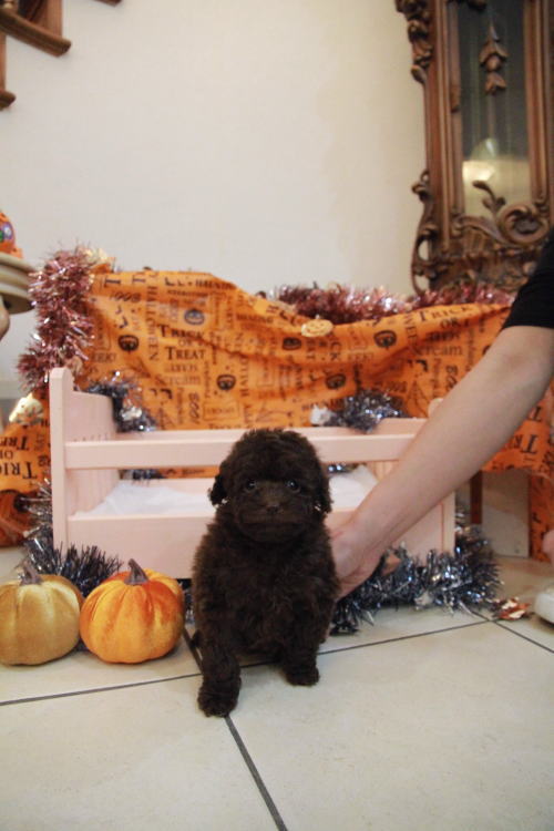 ★目が真ん丸で可愛いブラウンちゃん★ PRA発症しません。 成犬時の予想サイズが1.6kg位のティーカップサイズ予想の女の子です。 差し毛やミスカラーはありません。 撮影で鼻の色が薄く見えますが、とても濃い色素をしています!! フレンドリーな性格の子で、他の子犬達ととても仲良く遊んで生活しています♪ 目がクリクリしていて、顔のとても可愛い子で、ゴリラ顔ではありません。どちらかと言うとリス猿の様な可愛らしい顔つきのタイプです。 欠点など無しとなります。 毛量はとにかく豊富で、密度がとてもあります。 色味はとても濃いビターブラウンになります。 健康診断とワクチンが済んでおり、11月1日よりお引き渡し可能です。 飼育の事やトリミングの事など、ご不安な点も、子犬の購入後の手続きの際に一つずつ丁寧にご指導いたしております。 ご安心して、お気軽にお問い合わせ下さいませ。 表示価格は現金特価となっております。 カードでお支払いのお客様は577,500円(税抜525,000円)でございます。 当社で飼育の際に実際に使用しているゲージやトイレなどの生活用品の一式がセットになって37,800円の飼育セットの御用意がございます。 犬種ごとに選択いただくゲージも違いますので、初めての方は、ワンちゃんの購入の際に、同時に飼育セットをお持ち帰りいただく事をオススメしております。 ワンちゃんも使い慣れているので、不安無く新しい生活がスタート出来ると思います。 |