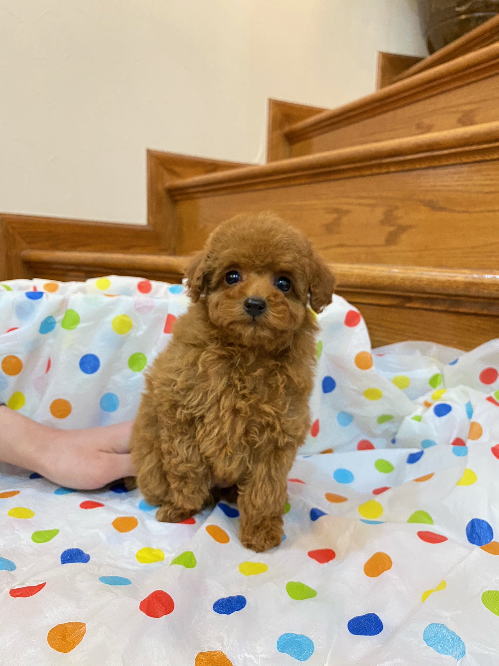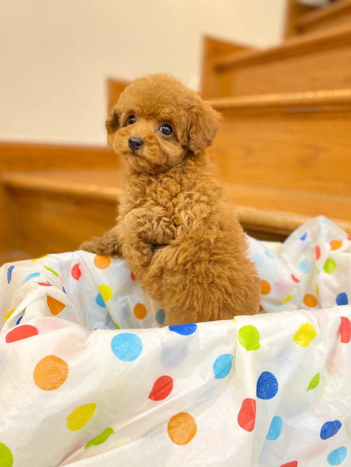★目がクリクリで可愛いティーカップちゃん★ 成犬時の予想サイズが1.8kg位のティーカップサイズに仕上がりそうです。 顔が丸顔でとっても可愛くて、目がクリクリしていて大きく、マズルがとても詰まっている子です。 体型も真ん丸くズングリムックリとしていて可愛らしい形をしています。 毛色は綺麗なレッドカラーで、毛量は素晴らしく抜群にあります。 写真では明るさ調整によって、毛色が薄く見えています。 1回目のワクチン接種と健康診断が終わっており、すぐにお引き渡しが可能です。 飼育の事やトリミングの事など、ご不安な点も、子犬の購入後の手続きの際に一つずつ丁寧にご指導いたしております。 ご安心して、お気軽にお問い合わせ下さいませ。 表示価格は現金特価となっております。 カードでお支払いのお客様は519,750円(税抜472,500円)でございます。 当社で飼育の際に実際に使用しているゲージやトイレなどの生活用品の一式がセットになって37,800円の飼育セットの御用意がございます。 犬種ごとに選択いただくゲージも違いますので、初めての方は、ワンちゃんの購入の際に、同時に飼育セットをお持ち帰りいただく事をオススメしております。 ワンちゃんも使い慣れているので、不安無く新しい生活がスタート出来ると思います。 |