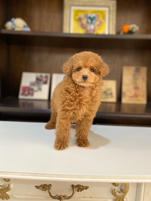 ★お顔が可愛く性格温厚な育てやすい男の子★ PRAクリアの家系のみです!! 色味は実物はもっと濃いです!! 成犬時の予想サイズが2.5kg位のタイニーサイズタイプの男の子です。 とてもお利口さんでトイレは完璧!! 性格は穏やかで優しい子に育っています。 毛量がかなーーーり豊富で、密度があり、 毛を掻き分けても地肌が出ない子です。 綿菓子みたいです♪ お顔は甘いマスクで女の子のような顔つきで可愛い子です!!! 手がかからない子なので、初めての飼育の方には最適だと思います。 1回目のワクチン接種と健康診断が終わっており、いつでもお引き渡しが可能です。 飼育の事やトリミングの事など、ご不安な点も、子犬の購入後の手続きの際に一つずつ丁寧にご指導いたしております。 ご安心して、お気軽にお問い合わせ下さいませ。 表示価格は現金特価となっております。 カードでお支払いのお客様は438,900円(税抜399 ,000円)でございます。 当社で飼育の際に実際に使用しているゲージやトイレなどの生活用品の一式がセットになって37,800円の飼育セットの御用意がございます。 犬種ごとに選択いただくゲージも違いますので、初めての方は、ワンちゃんの購入の際に、同時に飼育セットをお持ち帰りいただく事をオススメしております。 ワンちゃんも使い慣れているので、不安無く新しい生活がスタート出来ると思います。 |