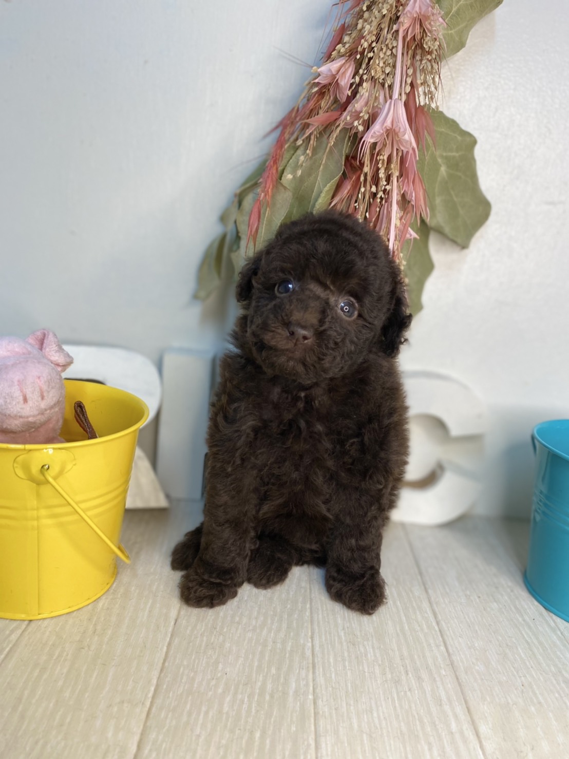 ★小ぶりサイズの可愛いブラウンちゃん★ 成犬時の予想サイズが2〜2.3kg位の小ぶりタイニーサイズ予想の女の子です。 差し毛やミスカラーはありません。 撮影で鼻の色が薄く見えますが、とても濃い色素をしています!! 大人しい性格の子で、トリミング、撮影もとてもお利口さんでした。 目がクリクリしていて、顔のとても可愛い子で、ゴリラ顔ではありません。どちらかと言うとリス猿の様な可愛らしい顔つきのタイプです。 欠点など無しとなります。 毛量はとにかく豊富で、密度がとてもあります。 色味はとても濃いビターブラウンになります。 お引き渡しは生後60日あたりとなります。 お支払いは現金決済のみとなります。 飼育の事やトリミングの事など、ご不安な点も、子犬の購入後の手続きの際に一つずつ丁寧にご指導いたしております。 ご安心して、お気軽にお問い合わせ下さいませ。 |