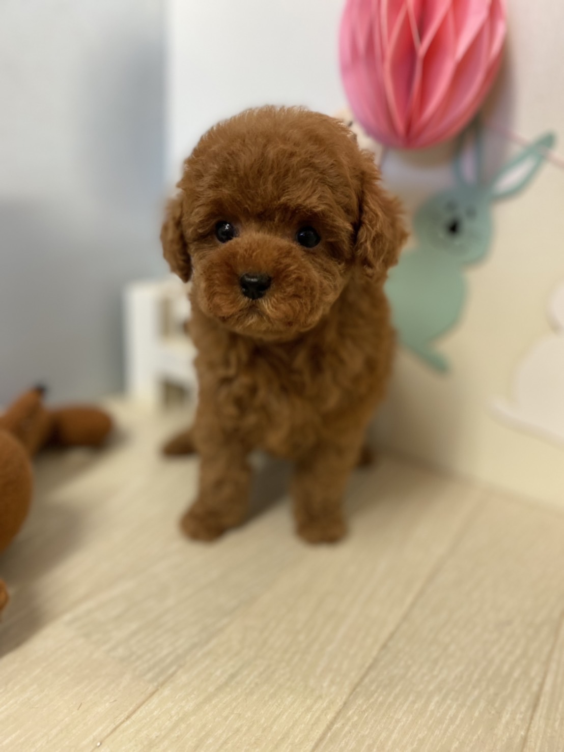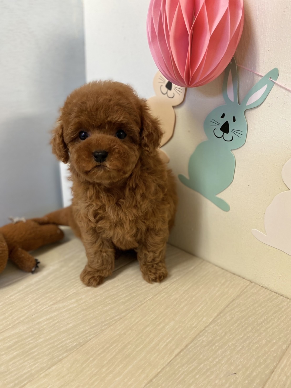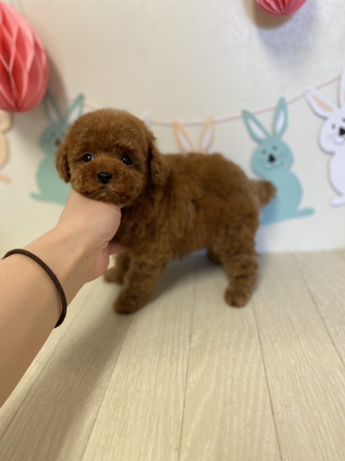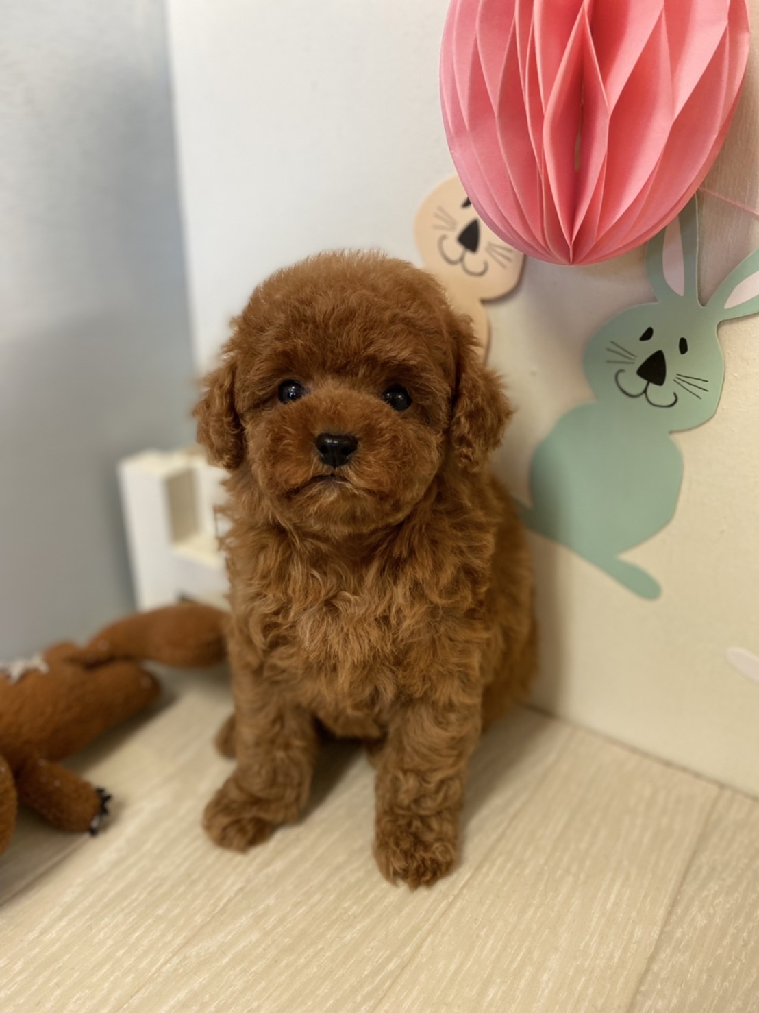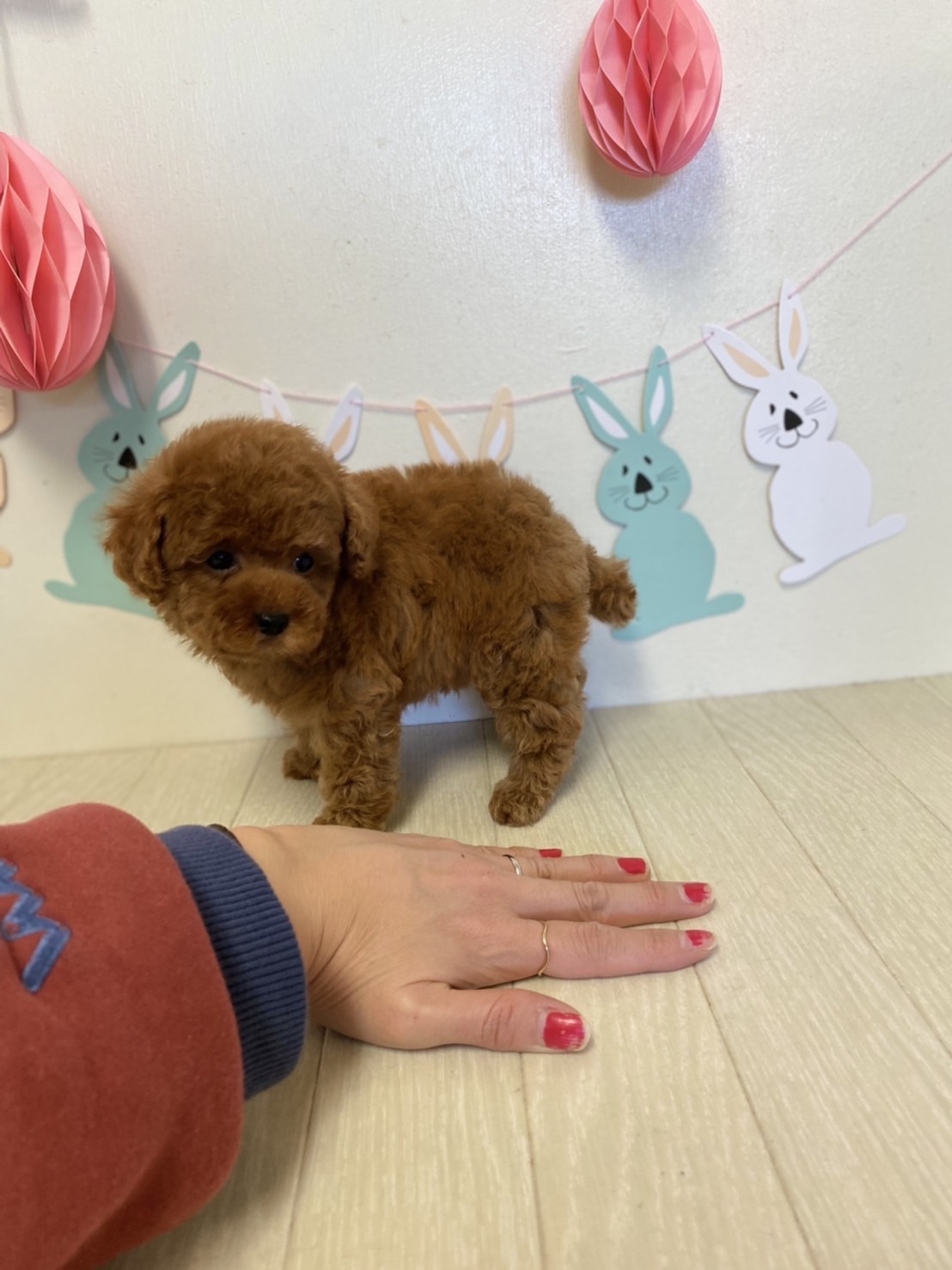 ※それぞれの画像の左上にある虫眼鏡ボタンを押して、元の画素数で必ずご覧くださいませ。 そのままですと画素数が下がっており暗く荒いです。 成犬時の予想サイズが1.5kg位のティーカップサイズに仕上がりそうです。 顔が丸顔でとっても可愛くて、目がクリクリしていて大きく、マズルがとても詰まっている子です。 体型も真ん丸くズングリムックリとしていて可愛らしい形をしています。 毛色がかなり濃いディープレッドで、毛量は素晴らしく抜群にあります。 性格は、人懐こく、犬にもとても良く、怖がりでもなく、明るく優しい子です。 食事もきちんと食べて元気に成長してます!! お支払い方法が現金決済のみとなっております。 1回目のワクチン接種と健康診断が済んでおり、すぐにお引き渡しが可能です。 飼育の事やトリミングの事など、ご不安な点も、子犬の購入後の手続きの際に一つずつ丁寧にご指導いたしております。 ご安心して、お気軽にお問い合わせ下さいませ。 |