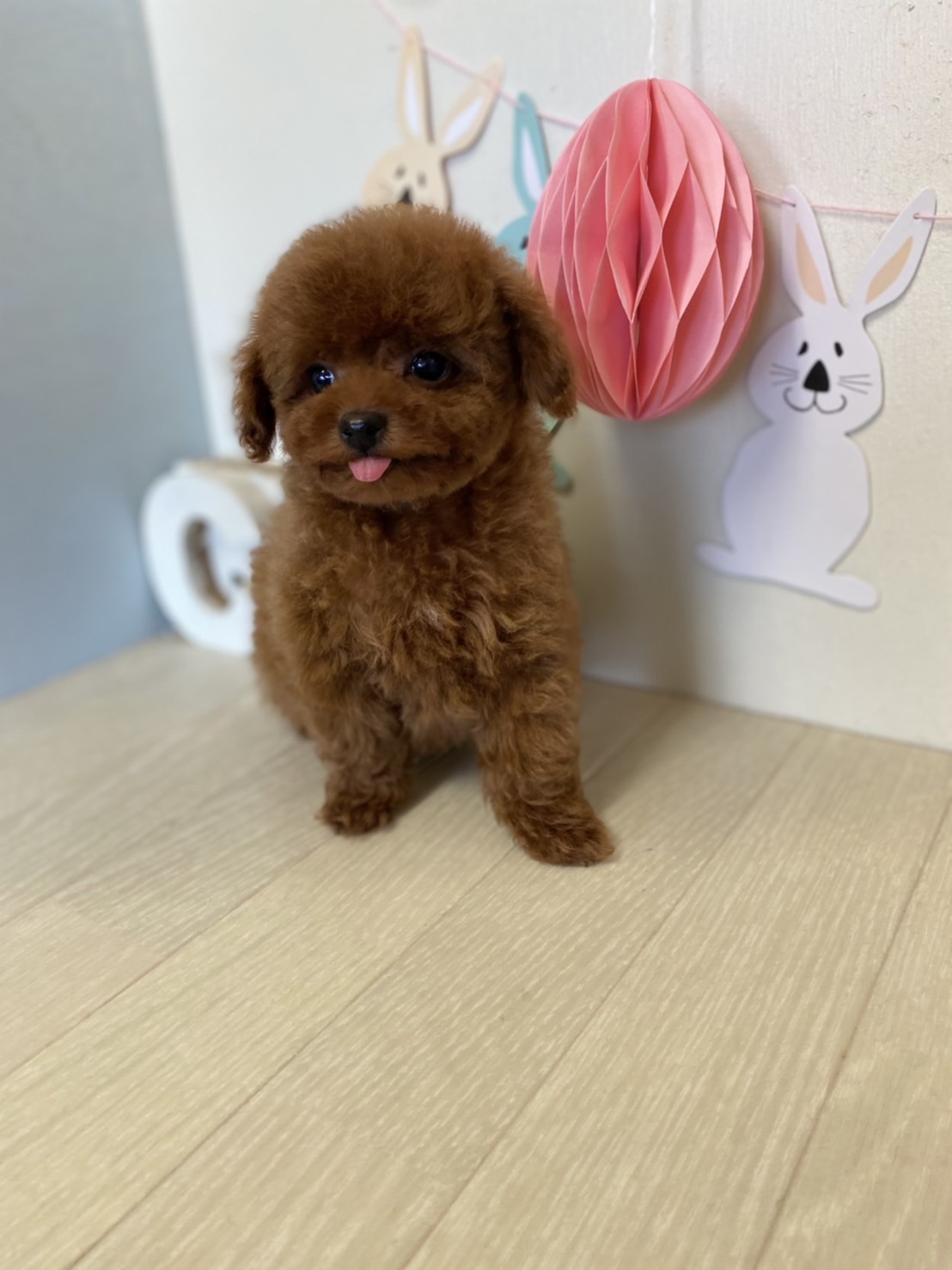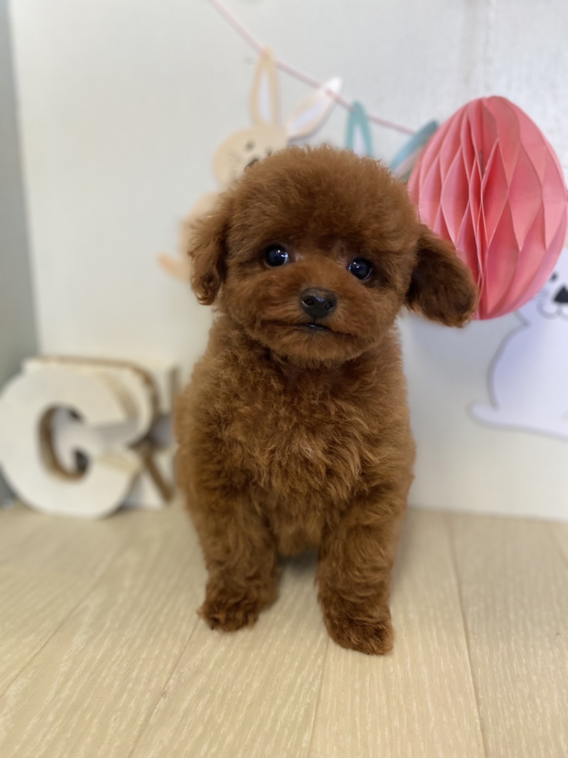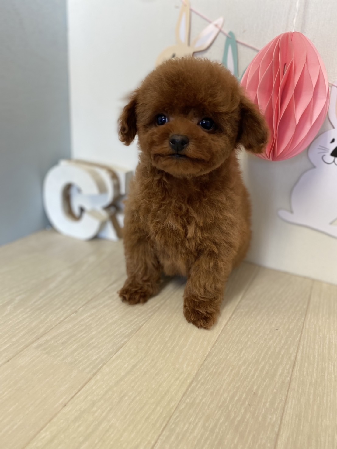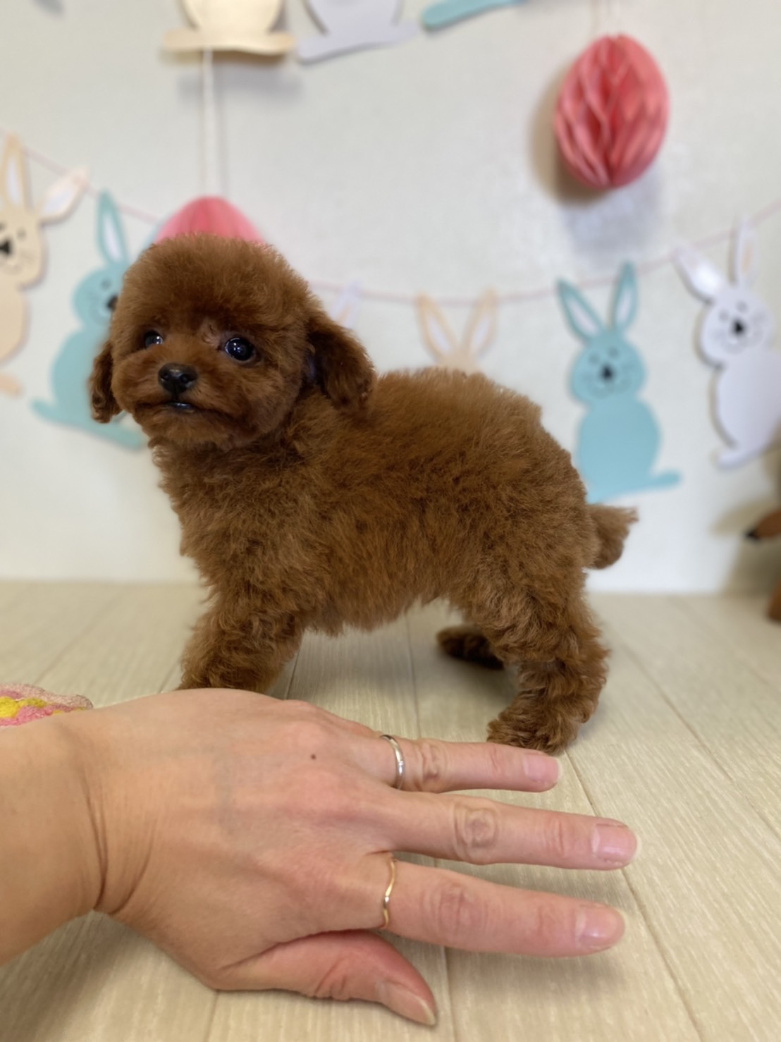 ※それぞれの画像の左上にある虫眼鏡ボタンを押して、元の画素数で必ずご覧くださいませ。 そのままですと画素数が下がっており暗く荒いです。 ★はい!完璧!!激カワの男の子★ 成犬時の予想サイズが1.6kg位のティーカップサイズタイプに仕上がりそうな子です。 顔がとっても可愛くて、目がクリクリしていて大きく、マズルはビックリする位に猫の口元の様にドン詰まりです。 色味が濃いめのレッドで、写真撮影では、顔の表情を重視してカメラの明るさ設定をしていますので、実際には一段階以上濃い毛色でございます。 また、毛吹きは物凄く、毛量がとっても豊富で、毛質はかなり良い柔らかな毛質をしています。 数本の差し毛(白い毛)が胸に入ってますが、健康上に何の問題もございません。 性格は甘えん坊さんで人が大好きな子です。 お支払い方法は現金決済となります。 1回目のワクチン接種と健康診断が終わっており、すぐにお引き渡しが可能です。 飼育の事やトリミングの事など、ご不安な点も、子犬の購入後の手続きの際に一つずつ丁寧にご指導いたしております。 ご安心して、お気軽にお問い合わせ下さいませ。 |