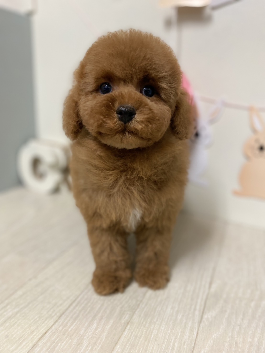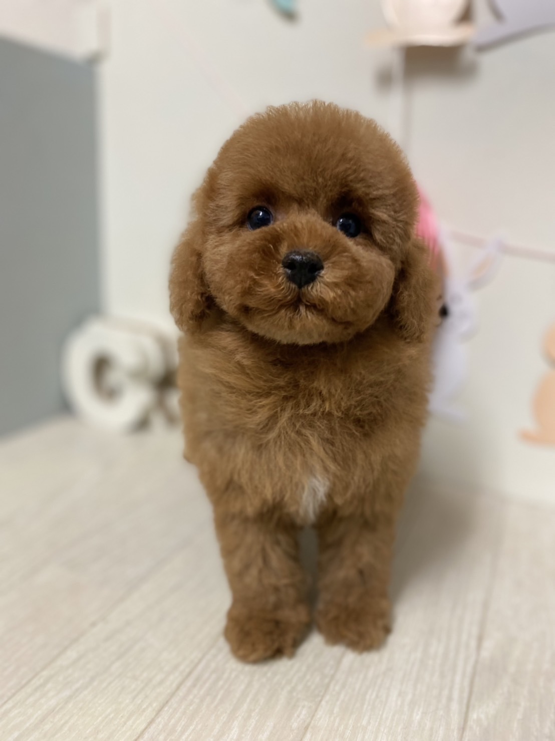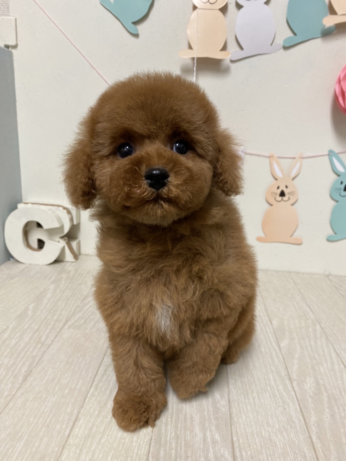 ※それぞれの画像の左上にある虫眼鏡ボタンを押して、元の画素数で必ずご覧くださいませ。 そのままですと画素数が下がっており暗く荒いです。 ★毛量抜群のベビーフェイスくん★ 成犬時の予想サイズが2.3kg位のタイニーサイズタイプの男の子です。 胸にミスカラーが入りましたので、その分価格を低く設定しておりますが、ミスカラー(ドッグショーに出られないというだけのもので、健康上の問題はありません。)以外は申し分の無いかなり良い犬質です。 毛量がとっても豊富なので、密度があり、 毛を掻き分けても地肌が出ない子です。 とっても目が大きくデカい子になります。 写真だと、目が強調されすぎて可愛く撮れていませんが、実物は目がクリクリでマズルの短い小さな子です。 1回目のワクチン接種と健康診断が終わっており、すぐにお引き渡しが可能です。 お支払い方法は現金払いのみとなっております。 飼育の事やトリミングの事など、ご不安な点も、子犬の購入後の手続きの際に一つずつ丁寧にご指導いたしております。 ご安心して、お気軽にお問い合わせ下さいませ。 |
