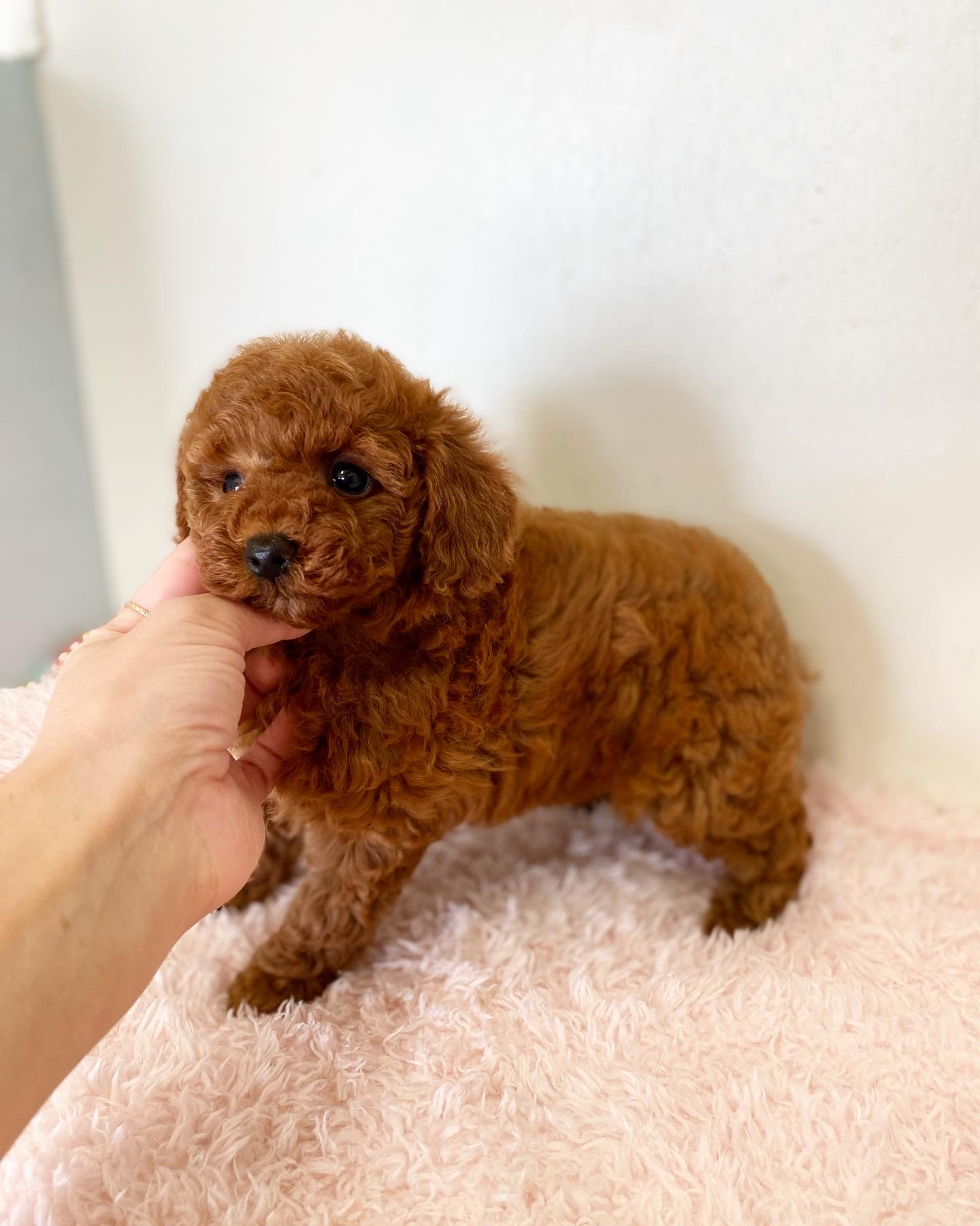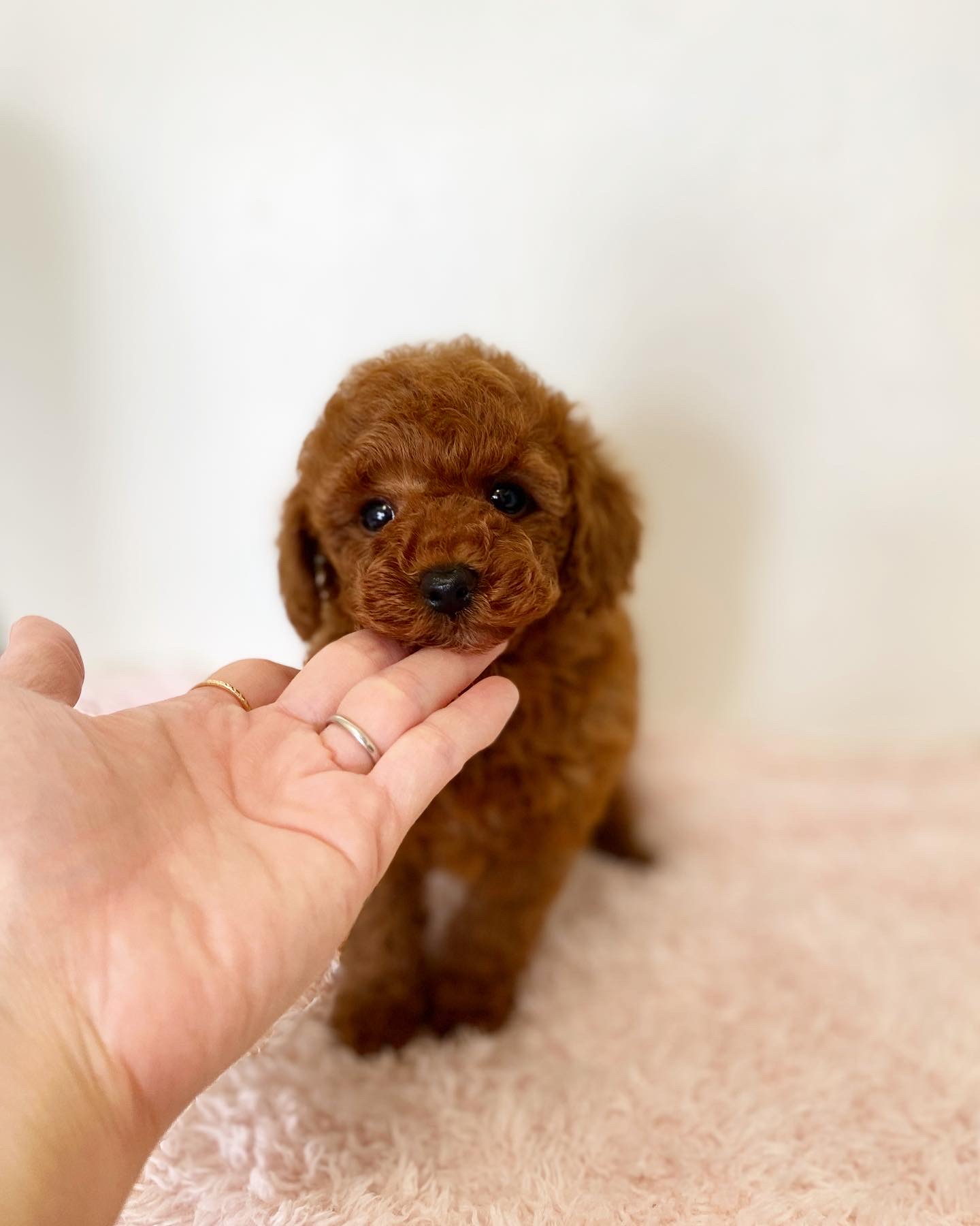 ※それぞれの画像の左上にある虫眼鏡ボタンを押して、元の画素数で必ずご覧くださいませ。 そのままですと画素数が下がっており暗く荒いです。 ★ディープレッド・毛量最高・毛質最高★ 成犬時の予想サイズが2.8kg位のタイニーサイズタイプの女のです。 濃いレッドカラーで、毛量は今年1番で、毛質も柔らかく、しなやかで今年1番!!! 胸と顎に数本の差し毛(白い毛)が入りましたので、その分価格を低く設定しておりますが、ミスカラー(ドッグショーに出られないというだけのもので、健康上の問題はありません。)以外は申し分の無いかなり良い犬質です。 優しく穏やかな性格をしている子で、3匹兄妹なので、噛まれたら痛い、噛んだら痛いなど、しっかりと社会性を身につけながら生活してます。 法令遵守の為、10月18日よりお引き渡しが可能です。 18日以前におきましては、半金お支払いいただいたお客様で確定いたします。お客様の都合によるキャンセルの際は、予約金の返金が出来ませんので、よくご検討の上お問い合わせくださいませ。 18日以降につきましては、見学、決定、そのままお連れいただきます。予約はございません。 お支払い方法は現金払いのみとなっております。 飼育の事やトリミングの事など、ご不安な点も、子犬の購入後の手続きの際に一つずつ丁寧にご指導いたしております。 ご安心して、お気軽にお問い合わせ下さいませ。 |
