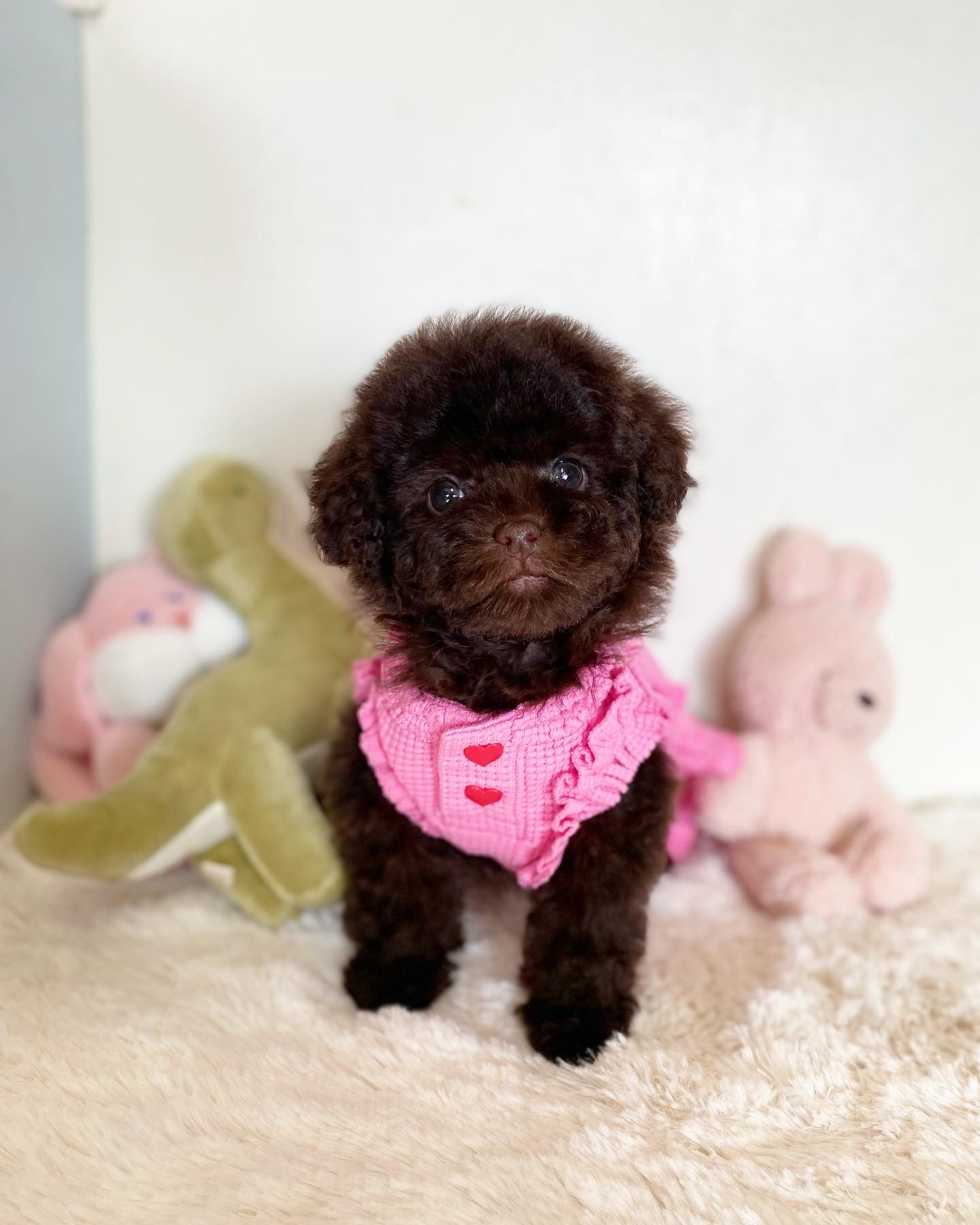 ※それぞれの画像の左上にある虫眼鏡ボタンを押して、元の画素数で必ずご覧くださいませ。 そのままですと画素数が下がっており暗く荒いです。 お陰様でトイプードルのブリーダー20年以上となりました。 先祖はPRAクリアのみを用いており、リピーター率80%以上(過去販売実績率比)となりました! 愛知及び福岡での近隣引渡しサービスのご利用が可能です( *´꒳`* ) ♡ドラミちゃんの娘♡ 実物もめちゃくちゃ可愛いです! 飼い主様募集中の女の子(⌯︎¤̴̶̷̀ᴗ¤̴̶̷́⌯︎)✧ 1月19日生 ブラウン 女の子 見学及び購入予約は随時可能 法定引渡開始3月17日〜 ティーカップサイズ1.6kg位の予想です❣️ ダークブラウン、毛量抜群👍 色素もかなり濃いです! 顔の表情を優先した撮影の為、カメラの明るさを上げています。 実物は黒に近い色味で、鼻やアイラインも黒に近い焦茶色です。 毛色がほぼ退色しない、国内では珍しい血統家系✨✨ これぞ正に、本物のブラウンです!! お支払いは現金払いのみとなります。 3月16日まではワンちゃん代金の半金のお支払いで予約が可能です。 お客様の都合によるキャンセルはお受け出来ません。また、返金も致しかねます。 ご見学時に生後60日以上の場合は、原則として、見学及び引き渡しが同時となります。 お代として、ワンちゃん代、ワクチン代などと、任意で保加入希望の方はクレジットカード、子犬をお連れいただくキャリーケースをご用意お待ちくださいませ。 |