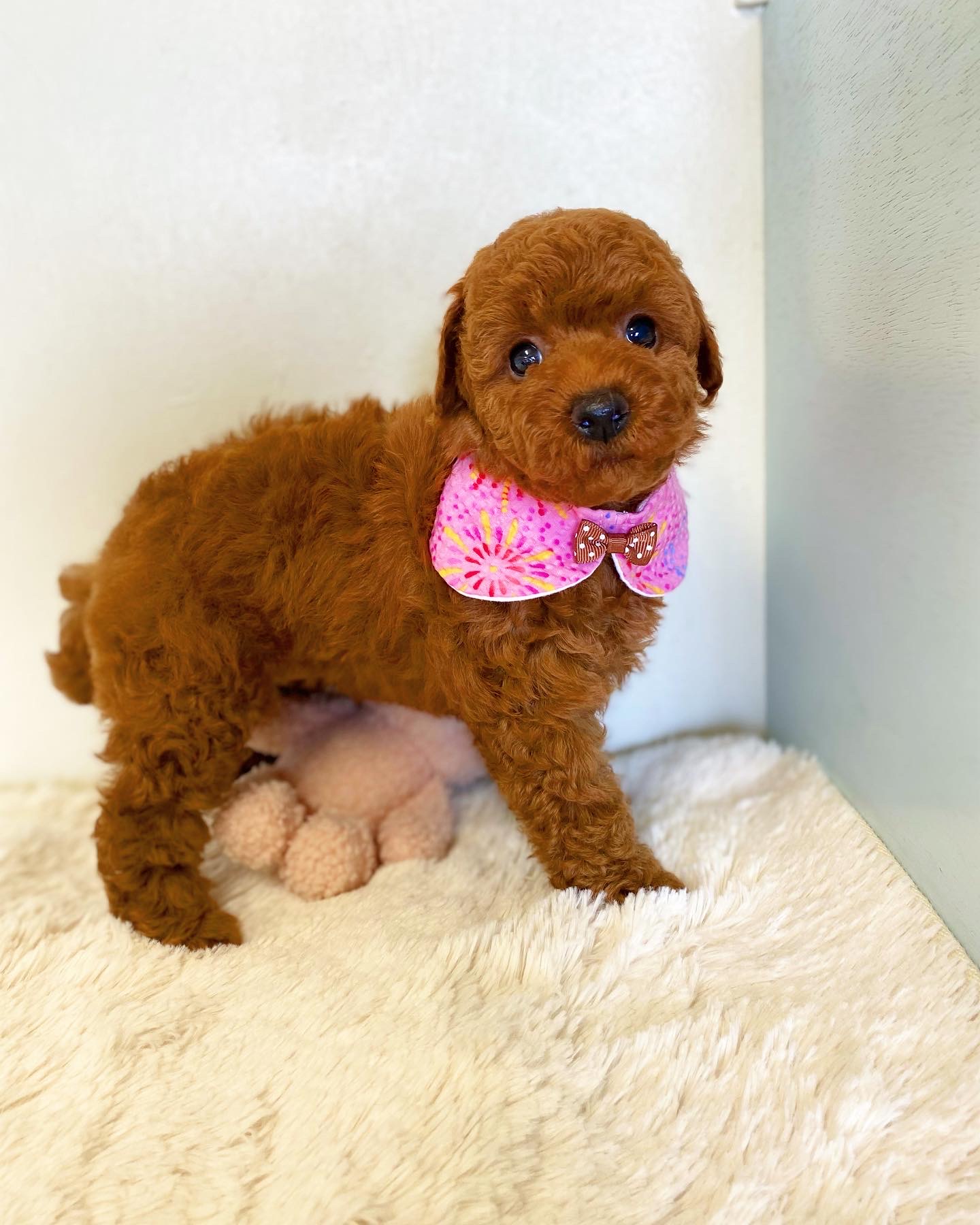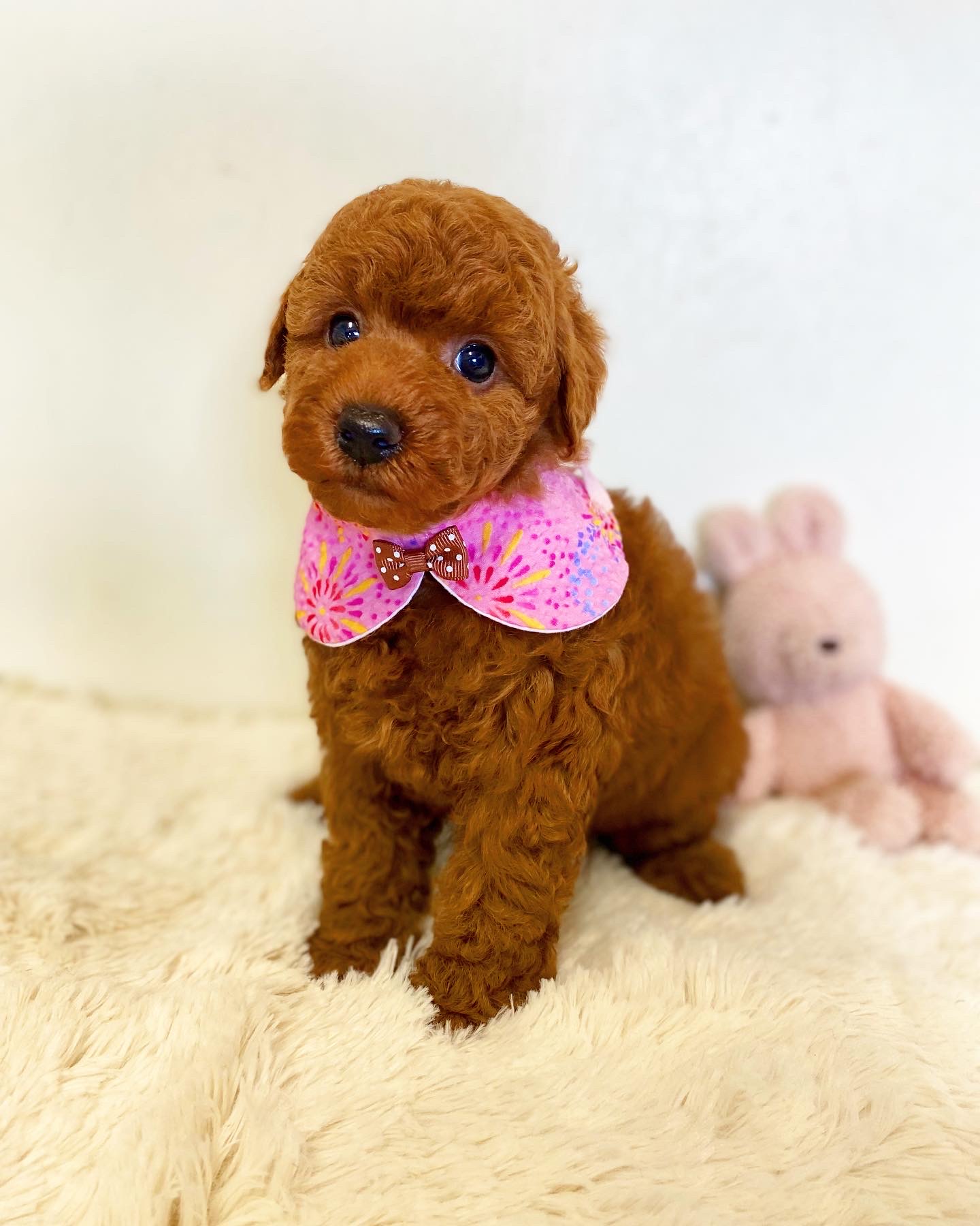 お陰様でトイプードルのブリーダー20年以上となりました。 先祖はPRAクリアのみを用いており、リピーター率80%以上(過去販売実績率比)となりました! ♡イチゴちゃんの娘♡ 5月31日生 レッド 女の子 法定引渡7月27日〜 トイサイズ3.5〜4kg位予想のしっかりした子ですʕฅ•ᴥ•ฅʔ。*:❀ 色の濃いディープレッドの毛色◎ おっとりした女の子◎ 甘えん坊で抱っこナデナデ好き◎ ご飯ちゃんと食べる◎ 毛量かなり豊富でマリモみたい◎ 目が大きくてクリクリ◎ 出臍がある為、その分、下げた価格設定になっております。 飼育上、健康上、生活上に支障はございませんが、避妊手術の時に、出臍の手術を一緒に出来ます。 他の方々は、チャームポイントで可愛いと迎えてくださっております。 お支払いは現金払いのみとなります。 ご見学時に生後57日以上の場合は、原則として、見学及び引き渡しが同時となります。 お迎えの準備を整えてお越し頂きますので、必要な方にはお手紙を添付いたします☺️ お代として、ワンちゃん代、ワクチン代などと、アニコム保険に任意で加入希望の方はクレジットカード、子犬をお連れいただくキャリーケースをご用意お待ちくださいませ! |