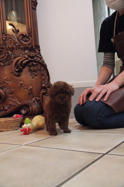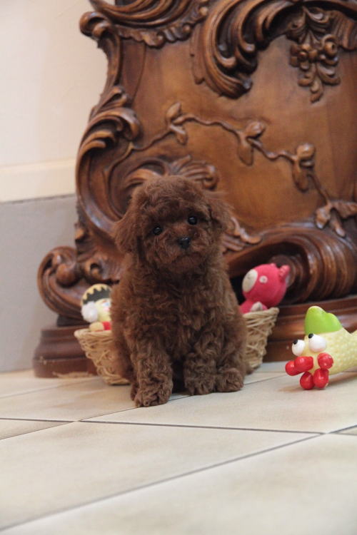 ★小ぶりタイニーサイズの男の子★ 成犬時の予想サイズが2kg位の小ぶりタイニーサイズタイプの男の子です。 代々の家系がティーカップサイズな為、ママ犬も帝王切開での出産となりました。 予想は2.1kgですが、早くにサイズが確定されてしまうこともあります。前回の子達は1.6、1.7kgでした。 犬質がとても高く、種雄やお婿さんとしてもオススメいたします。 毛色がとても濃いディープレッドで、抜群なコートを身にまとっています。 毛量がかなり豊富で、密度があり、毛を掻き分けても地肌が出ない子です。 色素はとても濃く、生まれた時に既に鼻が黒かった子です。 性格が穏やかで、甘えん坊さんのタイプで、人にくっついて居るのが好きな子です。 1回目のワクチン接種と健康診断が終わっており、すぐにお引き渡しが可能です。 飼育の事やトリミングの事など、ご不安な点も、子犬の購入後の手続きの際に一つずつ丁寧にご指導いたしております。 ご安心して、お気軽にお問い合わせ下さいませ。 表示価格は現金特価となっております。 カードでお支払いのお客様は283,500円(税抜262,500円)でございます。 当社で飼育の際に実際に使用しているゲージやトイレなどの生活用品の一式がセットになって37,800円の飼育セットの御用意がございます。 犬種ごとに選択いただくゲージも違いますので、初めての方は、ワンちゃんの購入の際に、同時に飼育セットをお持ち帰りいただく事をオススメしております。 ワンちゃんも使い慣れているので、不安無く新しい生活がスタート出来ると思います。 |
