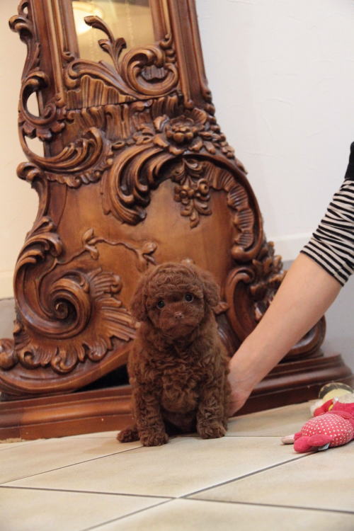 ★まん丸体系と目の女の子★ 成犬時の予想サイズが2.3kg位を予想している小振りタイニーサイズ予想の子です。 こちらの子は、とても可愛い子なのですが、鼻の色素が薄い為、通常価格よりお値段を引き下げております。月齢が浅いうちでの撮影となった為、まだこれから、もう少し濃くなります。 健康上や生活上には一切支障も無いのでご安心頂ければと思います。 顔は丸顔で、目は丸く大きく、マズルがドン詰まりで、顔はかなり可愛い子なので、鼻のお色だけが勿体ない!! 性格の優しい子で、おもちゃで遊ぶ時など、他の子犬達ととても上手に遊んでいます。 毛色がとても濃いディープレッドで、毛量抜群です!! 1回目のワクチン接種と健康診断が終わっており、すぐに引き渡しが可能です。 飼育の事やトリミングの事など、ご不安な点も、子犬の購入後の手続きの際に一つずつ丁寧にご指導いたしております。 ご安心して、お気軽にお問い合わせ下さいませ。 表示価格は現金特価となっております。 カードでお支払いのお客様は260,820円(税抜241,500円)でございます。 当社で飼育の際に実際に使用しているゲージやトイレなどの生活用品の一式がセットになって37,800円の飼育セットの御用意がございます。 犬種ごとに選択いただくゲージも違いますので、初めての方は、ワンちゃんの購入の際に、同時に飼育セットをお持ち帰りいただく事をオススメしております。 ワンちゃんも使い慣れているので、不安無く新しい生活がスタート出来ると思います。 |