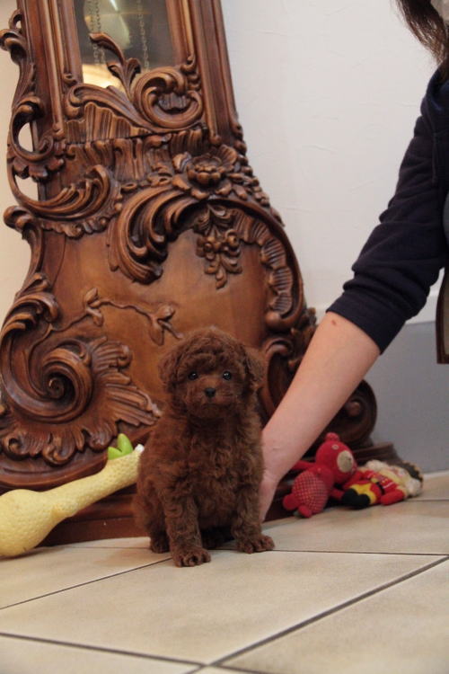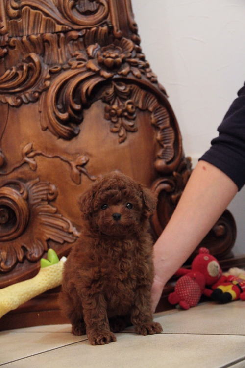 ★高い犬質!!クオリティの高い犬です!!★ 成犬時の予想サイズが2.5kg位のタイニーサイズを予想している男の子です。 毛量が抜群で、毛を掻き分けても地肌の見えないボリューム。 毛色は濃いレンガ色のディープレッドです。 目がとっても丸く大きい子で、マズルは詰まっており、顔回りの毛が伸びたら更に可愛さが引き出されます。 性格は、温厚でおっとり、ゆったりとした性格で、穏やかなタイプに育っています。 犬質がかなり高いので、種雄、お婿さんとしての候補としてもオススメです!! 1回目のワクチン接種と健康診断が終わっており、いつでもお引き渡しが可能です。 飼育の事やトリミングの事など、ご不安な点も、子犬の購入後の手続きの際に一つずつ丁寧にご指導いたしております。 ご安心して、お気軽にお問い合わせ下さいませ。 表示価格は現金特価となっております。 カードでお支払いのお客様は283,500円(税抜262,500円)でございます。 当社で飼育の際に実際に使用しているゲージやトイレなどの生活用品の一式がセットになって37,800円の飼育セットの御用意がございます。 犬種ごとに選択いただくゲージも違いますので、初めての方は、ワンちゃんの購入の際に、同時に飼育セットをお持ち帰りいただく事をオススメしております。 ワンちゃんも使い慣れているので、不安無く飼育を開始いただけると思います。 |