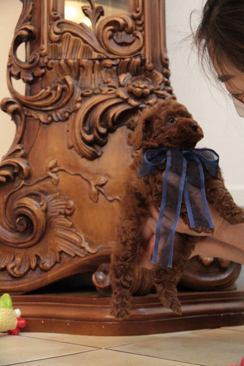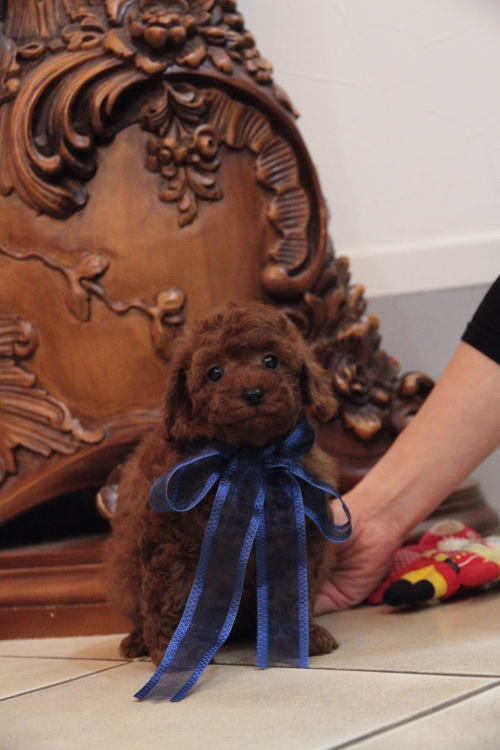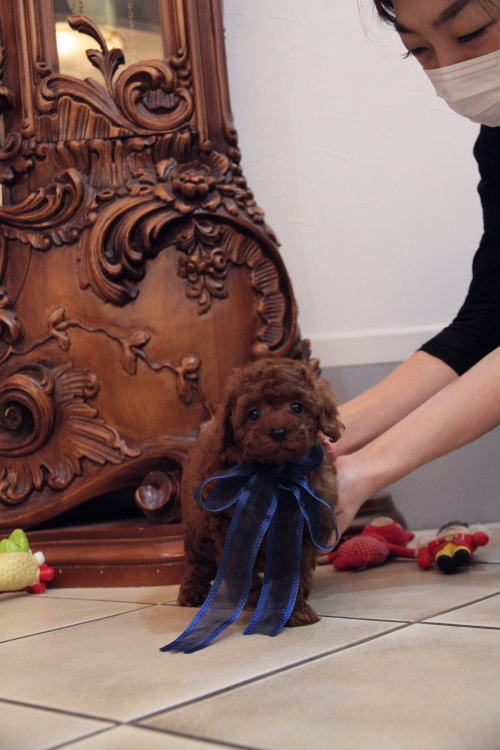 ★ディープレッド・トイサイズ2★ 成犬時の予想サイズが3kg位のしっかりしたトイサイズを予想している男の子です。 毛量が抜群で、毛を掻き分けても地肌の見えないボリューム。 毛色は濃いレンガ色のかなり濃いディープレッドです。 中・大型犬との多頭飼育を希望される方や、小型犬飼育初心者、小さなお子様が居るご家庭、元気一杯のお子様が居る家庭、ランやアウトドアが好きな家庭、ウォーキングが趣味の方に最適です!! しっかりしていて、サイズとしても骨折などの心配が無い事、低血糖の心配が無い事などがございます。 性格は、サイズとは違い、温厚でおっとり、ゆったりとした性格で、穏やかなタイプに育っています。 男の子なので、女の子と違って気の強い面は無く、完全に甘えん坊のべったりさんです♪ 犬質がかなり高いので、一人でブリーディングを営んでいて、小さな種雄だと交配が大変だと思いますので、ショーチャレンジや種雄、お婿さんとしての候補としてもオススメです!! 1回目のワクチン接種と健康診断が終わっており、いつでもお引き渡しが可能です。 飼育の事やトリミングの事など、ご不安な点も、子犬の購入後の手続きの際に一つずつ丁寧にご指導いたしております。 ご安心して、お気軽にお問い合わせ下さいませ。 表示価格は現金特価となっております。 カードでお支払いのお客様は226,800円(税抜210,000円)でございます。 当社で飼育の際に実際に使用しているゲージやトイレなどの生活用品の一式がセットになって37,800円の飼育セットの御用意がございます。 犬種ごとに選択いただくゲージも違いますので、初めての方は、ワンちゃんの購入の際に、同時に飼育セットをお持ち帰りいただく事をオススメしております。 ワンちゃんも使い慣れているので、不安無く飼育を開始いただけると思います。 |