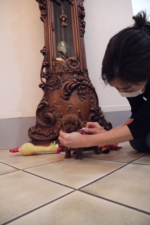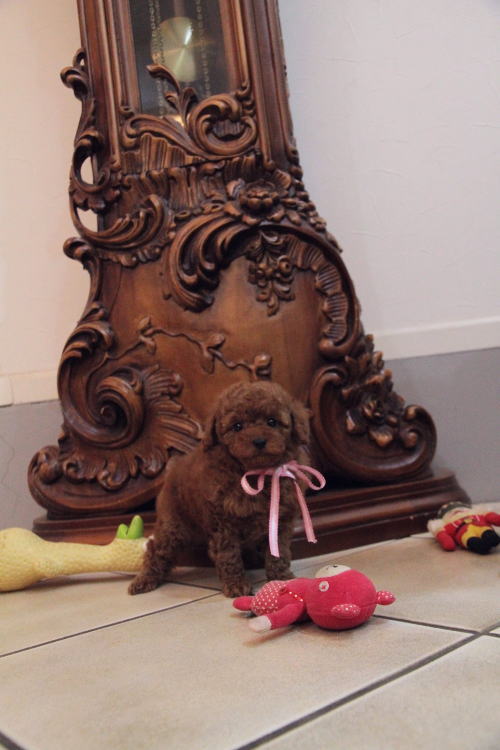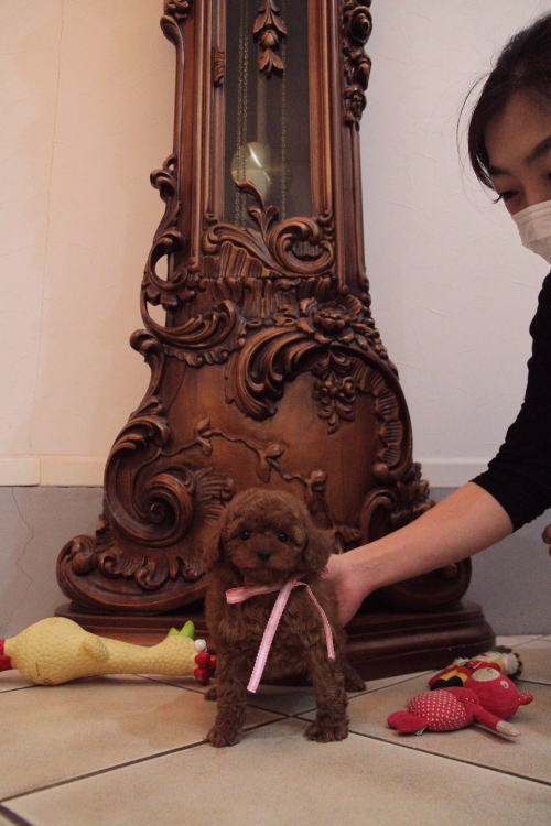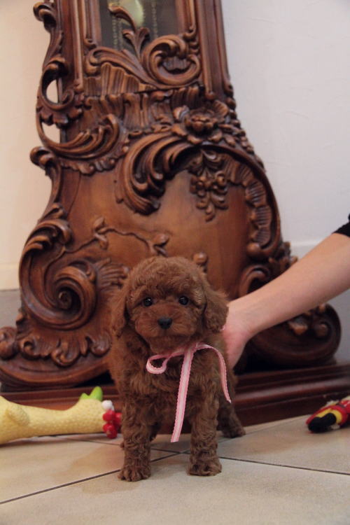 ★毛量豊富で顔の可愛い女の子★ 成犬時の予想サイズ3kg位タイニーサイズ後半タイプで抱っこした時に丁度良いサイズ感の女の子です。 目がクリックリで丸く大きく、顔が全体的にかなり可愛くて、毛量、顔のパーツの配置など、とにかく完璧です!! 毛色はディープレッドで、毛量がかなりあるので、トリミングスタイルの楽しめる子です。 犬の質も良く、血統も良く、顔が可愛く、癒し系な女の子です。 1回目のワクチン接種と健康診断が終わっており、すぐにお引き渡しが可能です。 飼育の事やトリミングの事など、ご不安な点も、子犬の購入後の手続きの際に一つずつ丁寧にご指導いたしております。 ご安心して、お気軽にお問い合わせ下さいませ。 表示価格は現金特価となっております。 カードでお支払いのお客様は430,920円(税抜399,000円)でございます。 当社で飼育の際に実際に使用しているゲージやトイレなどの生活用品の一式がセットになって37,800円の飼育セットの御用意がございます。 犬種ごとに選択いただくゲージも違いますので、初めての方は、ワンちゃんの購入の際に、同時に飼育セットをお持ち帰りいただく事をオススメしております。 ワンちゃんも使い慣れているので、不安無く新しい生活がスタート出来ると思います。 |