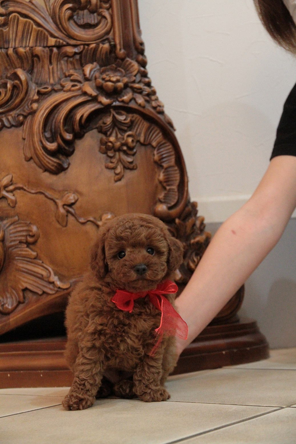 ★女の子に見えるめちゃくちゃ可愛い男の子★ 成犬時の予想サイズが3kg位のトイサイズを予想している男の子です。 毛量が抜群で、毛を掻き分けても地肌の見えないボリューム。 毛色は濃いレンガ色のディープレッドです。 目がとっても丸く大きい子で、マズルは詰まっていて、とってもかわいいお顔をしています!! 性格は、温厚でおっとり、ゆったりとした性格で、穏やかなタイプに育っています。 かかりつけ獣医師による健康診断で診ていただいてますが、小出ベソがありますが、生涯、手術など必要になるような出べそでは無いとご判断いただいている、本当に小さな出ベソがありますので、その分、若干の低い価格設定にしております。全く問題ありませんので、ご安心くださいませ。診て頂いた病院はワクチン証明書に記載されていますので、ご不安な方は引き続きご利用いただける病院となっております。 1回目のワクチン接種と健康診断が終わっており、いつでもお引き渡しが可能です。 飼育の事やトリミングの事など、ご不安な点も、子犬の購入後の手続きの際に一つずつ丁寧にご指導いたしております。 ご安心して、お気軽にお問い合わせ下さいませ。 表示価格は現金特価となっております。 カードでお支払いのお客様は283,500円(税抜262 ,500円)でございます。 当社で飼育の際に実際に使用しているゲージやトイレなどの生活用品の一式がセットになって37,800円の飼育セットの御用意がございます。 犬種ごとに選択いただくゲージも違いますので、初めての方は、ワンちゃんの購入の際に、同時に飼育セットをお持ち帰りいただく事をオススメしております。 ワンちゃんも使い慣れているので、不安無く飼育を開始いただけると思います。 |