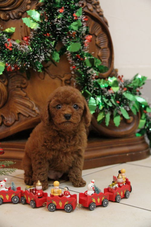 ★衝撃的な可愛さの男の子です★ 成犬時の予想サイズが2.1kg位のムクムクの小振りタイニー前半を予想している男の子です。 毛量が抜群で、毛を掻き分けても地肌の見えないボリューム。 毛色は濃いレンガ色のディープレッドです。 目がとっても丸く大きい子で、マズルは詰まっており、顔回りの毛が伸びたら更に可愛さが引き出されます。 口周り、顔周りの毛が一番遅く伸びるので、一般の方には丸く可愛らしいのが、なかなか伝わらないと思いますが、かなり可愛い顔をしている子です!! 目が、加工写真か!?って程にキラキラして撮れて、私達もビックリしていますが、一切の加工はしていません!!! 性格は、温厚でおっとり、ゆったりとした性格で、穏やかなタイプに育っています。 かかりつけ獣医師による健康診断で診ていただいてますが、小出ベソがありますが、生涯、手術など必要になるような出べそでは無いとご判断いただいている、本当に小さな出ベソがありますので、その分、若干の低い価格設定にしております。全く問題ありませんので、ご安心くださいませ。診て頂いた病院はワクチン証明書に記載されていますので、ご不安な方は引き続きご利用いただける病院となっております。 1回目のワクチン接種と健康診断が終わっており、いつでもお引き渡しが可能です。 飼育の事やトリミングの事など、ご不安な点も、子犬の購入後の手続きの際に一つずつ丁寧にご指導いたしております。 ご安心して、お気軽にお問い合わせ下さいませ。 表示価格は現金特価となっております。 カードでお支払いのお客様は288,750円(税抜262,500円)でございます。 当社で飼育の際に実際に使用しているゲージやトイレなどの生活用品の一式がセットになって37,800円の飼育セットの御用意がございます。 犬種ごとに選択いただくゲージも違いますので、初めての方は、ワンちゃんの購入の際に、同時に飼育セットをお持ち帰りいただく事をオススメしております。 ワンちゃんも使い慣れているので、不安無く飼育を開始いただけると思います。 |