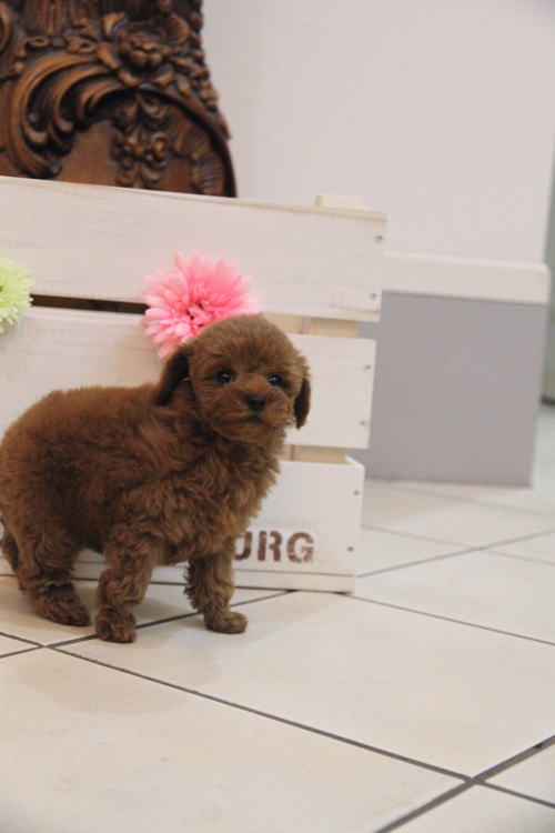 ★ティーカップのかなりの美人ちゃんです★ 成犬時の予想サイズが1.7kg位のティーカップサイズタイプの女の子です。 性格、顔ともにめちゃくちゃかわいいです!! 人懐こくて、オモチャ大好きです。 毛量はハンパないです!! サイズが小さくても、これだけの毛量ですと、成犬時のトリミングスタイルは貫禄のあるものになります。 1回目のワクチン接種と健康診断が終わっており、すぐにお引き渡しが可能です。 飼育の事やトリミングの事など、ご不安な点も、子犬の購入後の手続きの際に一つずつ丁寧にご指導いたしております。 ご安心して、お気軽にお問い合わせ下さいませ。 表示価格は現金特価となっております。 カードでお支払いのお客様は369,600円(税抜336,000円)でございます。 当社で飼育の際に実際に使用しているゲージやトイレなどの生活用品の一式がセットになって37,800円の飼育セットの御用意がございます。 犬種ごとに選択いただくゲージも違いますので、初めての方は、ワンちゃんの購入の際に、同時に飼育セットをお持ち帰りいただく事をオススメしております。 ワンちゃんも使い慣れているので、不安無く新しい生活がスタート出来ると思います |