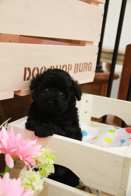 ★希少!!退色をしないジェットブラック!!★ 5月13日よりお引渡し可能 成犬時の予想サイズが2.6kg位のタイニーサイズでコロコロしたタイプに仕上がりそうな子ですよ。 顔が超絶可愛くて、目は真ん丸でクリックリ、マズルはビックリする位に詰まっていて、猫の口元の様にドン詰まりです。 毛色が、なかなか存在しない退色しないジェットブラックの家系です!! お爺ちゃん犬は8歳ですが、新車のブラックのようです!! ブラウンですと、殆ど退色しないので、お婆ちゃんもママもお爺ちゃんも濃いブラウンのままです!! 性格がとにかくイイです!! 穏やかだけど、遊びはして、でも騒がしくなく、小さな動きでチョコチョコと・・・。( *´艸`) 1回目のワクチン接種と健康診断が終わってからのお引き渡しとなります。 見学時に予約金として半金収めていただき、お客様都合によるキャンセルの場合にはキャンセル手数料として予約金の返金はいたしかねます。 飼育の事やトリミングの事など、ご不安な点も、子犬の購入後の手続きの際に一つずつ丁寧にご指導いたしております。 ご安心して、お気軽にお問い合わせ下さいませ。 表示価格は現金特価となっております。 カードでお支払いのお客様は519,750円(税抜472,500円)でございます。 当社で飼育の際に実際に使用しているゲージやトイレなどの生活用品の一式がセットになって37,800円の飼育セットの御用意がございます。 犬種ごとに選択いただくゲージも違いますので、初めての方は、ワンちゃんの購入の際に、同時に飼育セットをお持ち帰りいただく事をオススメしております。 ワンちゃんも使い慣れているので、不安無く新しい生活がスタート出来ると思います。 |