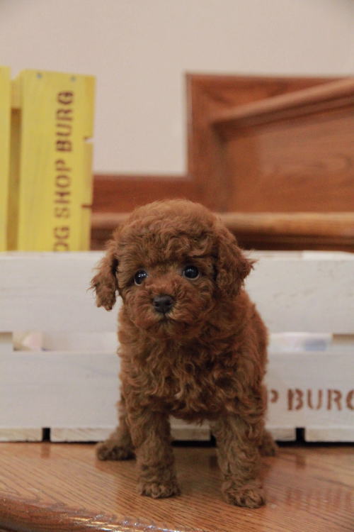 ★毛量豊富で可愛いディープレッドちゃん★ 実物の色味はかなり濃いレッドです(o^―^o) 成犬時の予想サイズ3kg位のトイサイズ前半タイプで抱っこした時に丁度良いサイズ感の女の子です。 目がクリックリで丸く大きく、顔が全体的にかなり可愛くて、毛量、顔のパーツの配置など、とにかく完璧です!! 毛色はディープレッドで、毛量がかなりあるので、トリミングスタイルの楽しめる子です。 鼻の脇の色素がまだ上がっていない部分があるのと、首元に多少の差し毛がある為、その分価格を下げております。 1回目のワクチン接種と健康診断が終わっており、すぐにお引き渡しが可能です。 飼育の事やトリミングの事など、ご不安な点も、子犬の購入後の手続きの際に一つずつ丁寧にご指導いたしております。 ご安心して、お気軽にお問い合わせ下さいませ。 表示価格は現金特価となっております。 カードでお支払いのお客様は519,750円(税抜472,500円)でございます。 当社で飼育の際に実際に使用しているゲージやトイレなどの生活用品の一式がセットになって37,800円の飼育セットの御用意がございます。 犬種ごとに選択いただくゲージも違いますので、初めての方は、ワンちゃんの購入の際に、同時に飼育セットをお持ち帰りいただく事をオススメしております。 ワンちゃんも使い慣れているので、不安無く新しい生活がスタート出来ると思います。 |