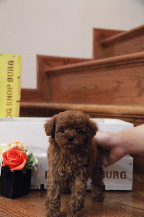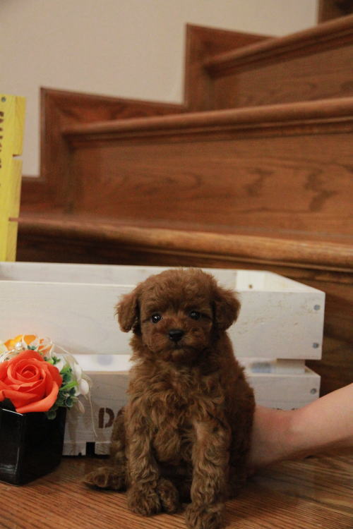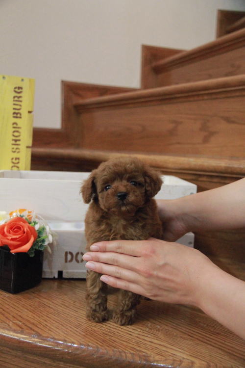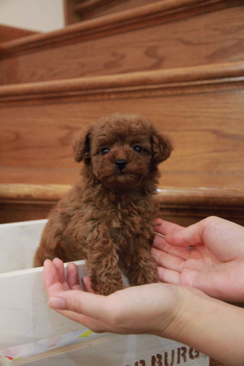 ★衝撃!!ディープレッド!!ティーカップ!!激カワ!!★ 成犬時の予想サイズが1.8kg位のティーカップサイズでコロコロしたタイプに仕上がりそうな子です。 顔が超絶可愛くて、目は真ん丸でクリックリ、マズルはビックリする位に詰まっています。 毛量がとっても豊富で、毛質はかなり良い柔らかな毛質をしています。 家系が、目が大きく丸い家系なのと、まだ瞼の皮膚に余裕がありますから、これから一か月かけて更にクリクリします。 目は生後20日近くまで少しずつ開いてくるものなのですが、凡そ生後90日程まで開きます。 人間が中学までは目が腫れぼったいのと同じです。少しずつ目もできていきます。 抱っこが大好き。 ママ犬がとっても面倒見が良くて、お育ちがとても良い雰囲気で育っています。 ディープレッド、顔激カワ、小さい、毛量抜群、性格可愛い、欠点ミスカラー無し!!!! もー言うこと無しです!!! 1回目のワクチン接種と健康診断が終わっており、すぐにお引き渡しが可能です。 飼育の事やトリミングの事など、ご不安な点も、子犬の購入後の手続きの際に一つずつ丁寧にご指導いたしております。 ご安心して、お気軽にお問い合わせ下さいませ。 表示価格は現金特価となっております。 カードでお支払いのお客様は785,400円(税抜714,000円)でございます。 当社で飼育の際に実際に使用しているゲージやトイレなどの生活用品の一式がセットになって37,800円の飼育セットの御用意がございます。 犬種ごとに選択いただくゲージも違いますので、初めての方は、ワンちゃんの購入の際に、同時に飼育セットをお持ち帰りいただく事をオススメしております。 ワンちゃんも使い慣れているので、不安無く新しい生活がスタート出来ると思います。 |