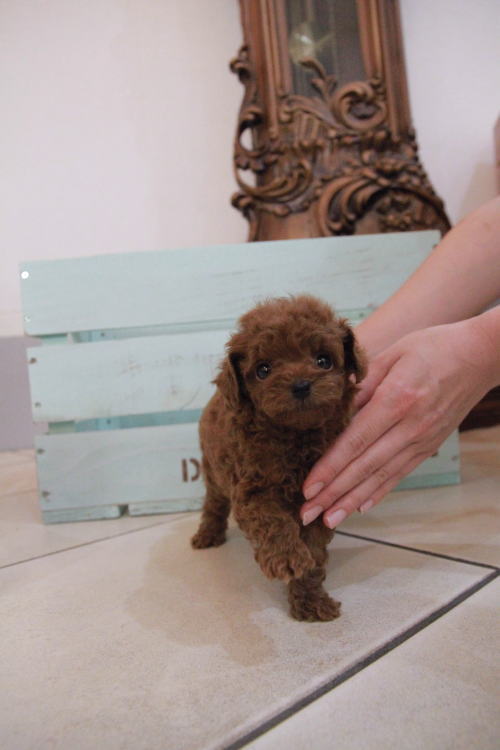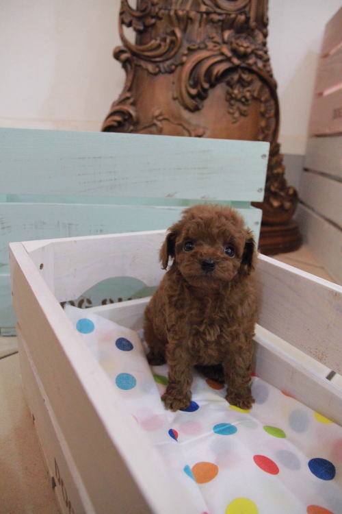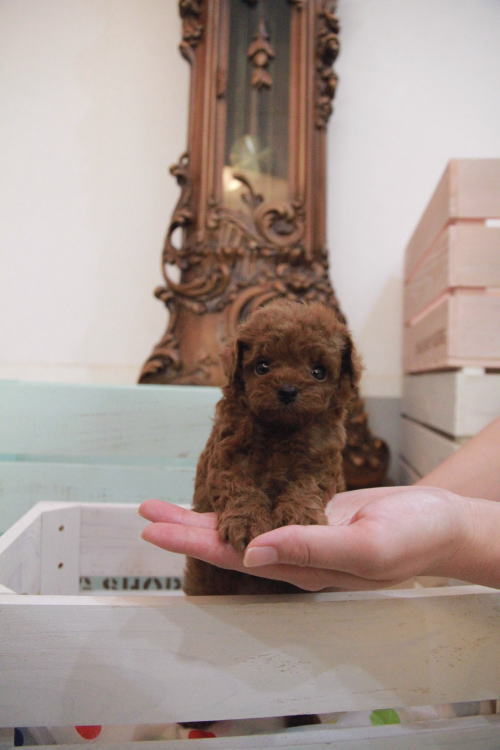 ★ディープレッドのマイクロティーカップちゃん★ 両親PRA検査クリア!! 成犬時の予想サイズが1.2kg位のティーカップサイズに仕上がりそうです。 顔が丸顔でとっても可愛くて、目がクリクリしていて大きく、マズルがとても詰まっている子です。 体型も真ん丸くズングリムックリとしていて可愛らしい形をしています。 毛色がかなり濃いディープレッドで、毛量は素晴らしく抜群にあります。 1回目のワクチン接種と健康診断が完了しており、いつでもお引渡し可能です。 飼育の事やトリミングの事など、ご不安な点も、子犬の購入後の手続きの際に一つずつ丁寧にご指導いたしております。 ご安心して、お気軽にお問い合わせ下さいませ。 表示価格は現金特価となっております。 カードでお支払いのお客様は693,000円(税抜630,000円)でございます。 当社で飼育の際に実際に使用しているゲージやトイレなどの生活用品の一式がセットになって37,800円の飼育セットの御用意がございます。 犬種ごとに選択いただくゲージも違いますので、初めての方は、ワンちゃんの購入の際に、同時に飼育セットをお持ち帰りいただく事をオススメしております。 ワンちゃんも使い慣れているので、不安無く新しい生活がスタート出来ると思います。 |
