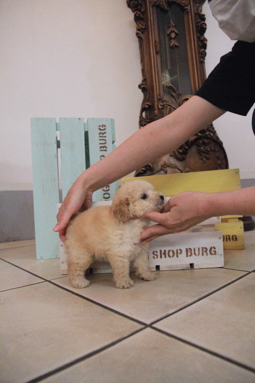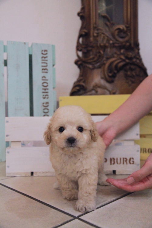 ★めちゃくちゃ可愛いクリームの女の子★ 成犬時の予想サイズが2.5kgのタイニーサイズタイプの女の子です。 毛色は数が少ないクリーム色で、目が大きく丸く真ん丸でとても可愛らしい顔をしています♪ 穏やかで兄妹喧嘩などは全く無く、とても人懐こく、性格のとても良い子です。 とても小さいなデベソがあるので、その分価格を下げて掲載しておりますが、手術が必要なレベルではございませんのでご安心くださいませ。 お引渡しは7月12日より可能です。 ご見学で引き渡し前による事前ご予約を半金でお受けできます。 飼育の事やトリミングの事など、ご不安な点も、子犬の購入後の手続きの際に一つずつ丁寧にご指導いたしております。 ご安心して、お気軽にお問い合わせ下さいませ。 表示価格は現金特価となっております。 カードでお支払いのお客様は519,750円(税抜472,500円)でございます。 当社で飼育の際に実際に使用しているゲージやトイレなどの生活用品の一式がセットになって37,800円の飼育セットの御用意がございます。 犬種ごとに選択いただくゲージも違いますので、初めての方は、ワンちゃんの購入の際に、同時に飼育セットをお持ち帰りいただく事をオススメしております。 ワンちゃんも使い慣れているので、不安無く新しい生活がスタート出来ると思います。 |