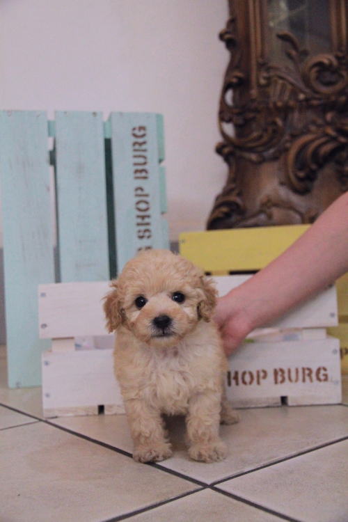 ★めちゃくちゃ可愛いクリームの男の子★ 成犬時の予想サイズが2.5kgのタイニーサイズタイプの男の子です。 毛色は数が少ないクリーム色で、目が大きく丸く真ん丸なので、女の子に見えるほど可愛らしい顔つきをしています♪ 穏やかで兄妹喧嘩などは全く無く、とても人懐こく、性格のとても良い子です。 お引渡しは7月12日より可能です。 ご見学で引き渡し前による事前ご予約を半金でお受けできます。 飼育の事やトリミングの事など、ご不安な点も、子犬の購入後の手続きの際に一つずつ丁寧にご指導いたしております。 ご安心して、お気軽にお問い合わせ下さいませ。 表示価格は現金特価となっております。 カードでお支払いのお客様は462,000円(税抜420,000円)でございます。 当社で飼育の際に実際に使用しているゲージやトイレなどの生活用品の一式がセットになって37,800円の飼育セットの御用意がございます。 犬種ごとに選択いただくゲージも違いますので、初めての方は、ワンちゃんの購入の際に、同時に飼育セットをお持ち帰りいただく事をオススメしております。 ワンちゃんも使い慣れているので、不安無く新しい生活がスタート出来ると思います。 |