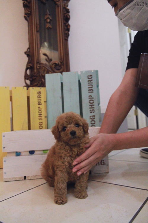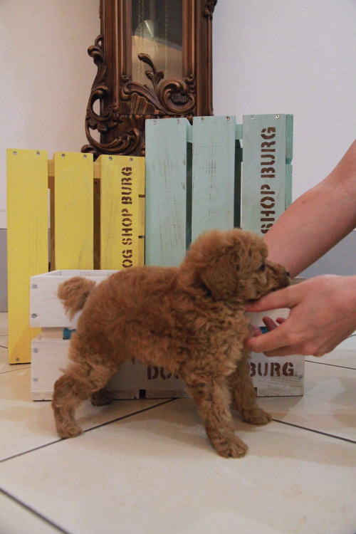 ★レアです!!アプリコットのミニプー!!★ 両親PRA検査クリアです。 成犬時の予想サイズが6kg位のサイズを予想している男の子です。 濃いめの綺麗なアプリカラーで、レッドの薄め位な感じです。 お顔もとてもかわいい子で、目が大きく、クリクリキラキラです♪ 兄弟はとっても仲良し。 オモチャで一人遊びをしてくれるようなとても楽に子育てが出来る子で助かっています。 1回目のワクチン接種と健康診断が終わっており、8月9日よりお引き渡しが可能です。 飼育の事やトリミングの事など、ご不安な点も、子犬の購入後の手続きの際に一つずつ丁寧にご指導いたしております。 ご安心して、お気軽にお問い合わせ下さいませ。 表示価格は現金特価となっております。 カードでお支払いのお客様は404,250円(税抜367,500円)でございます。 当社で飼育の際に実際に使用しているゲージやトイレなどの生活用品の一式がセットになって37,800円の飼育セットの御用意がございます。 犬種ごとに選択いただくゲージも違いますので、初めての方は、ワンちゃんの購入の際に、同時に飼育セットをお持ち帰りいただく事をオススメしております。 ワンちゃんも使い慣れているので、不安無く飼育を開始いただけると思います。 |
