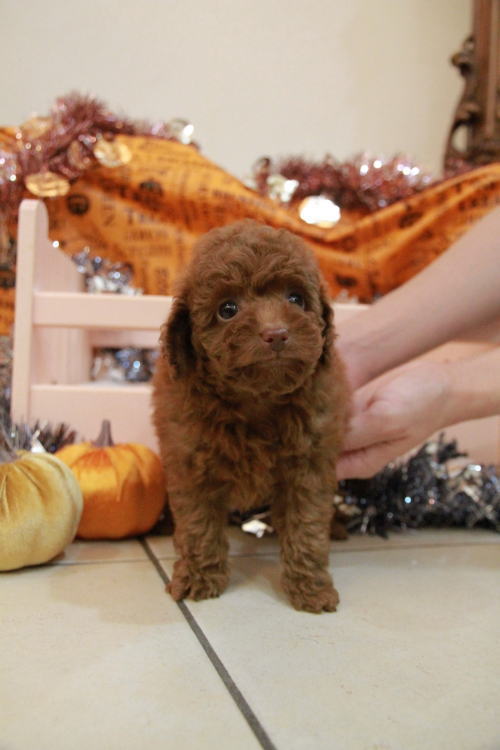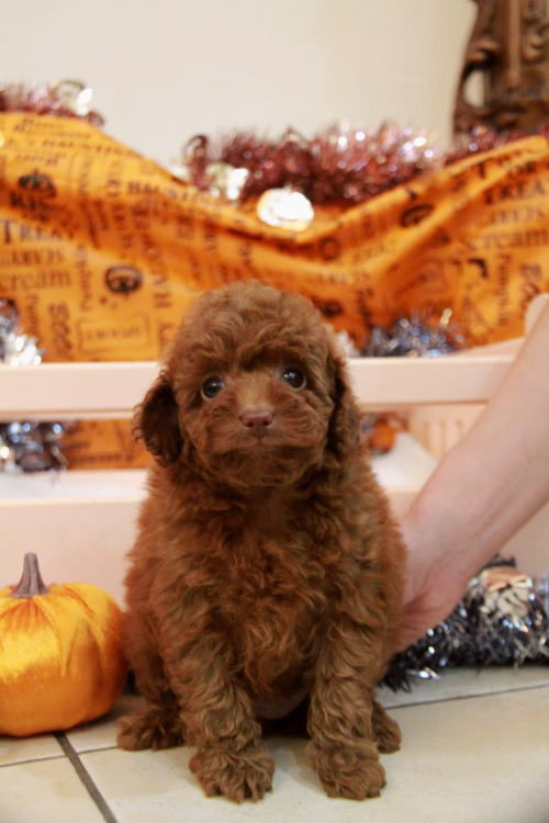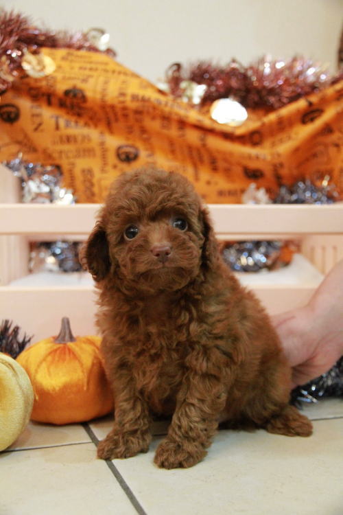 ★まん丸な目が愛らしいティーカップちゃん★ 家系が全てPRAクリアです!! 成犬時の予想サイズが1.7kg位を予想しているティーカップサイズ予想の子です。 こちらの子は、とても可愛い子なのですが、鼻の色素が薄い為、通常価格よりお値段を引き下げております。月齢が浅いうちでの撮影となった為、まだこれから、もう少し濃くなります。 健康上や生活上には一切支障も無いのでご安心頂ければと思います。 顔は丸顔で、目は丸く大きく、マズルがドン詰まりで、顔はかなり可愛い子なので、鼻のお色だけが勿体ない!! 性格の優しい子で、おもちゃで遊ぶ時など、他の子犬達ととても上手に遊んでいます。 毛色がとても濃いディープレッドで、毛量抜群です!! 1回目のワクチン接種と健康診断が終わっており、すぐに引き渡しが可能です。 飼育の事やトリミングの事など、ご不安な点も、子犬の購入後の手続きの際に一つずつ丁寧にご指導いたしております。 ご安心して、お気軽にお問い合わせ下さいませ。 表示価格は現金特価となっております。 カードでお支払いのお客様は404,250円(税抜367,500円)でございます。 当社で飼育の際に実際に使用しているゲージやトイレなどの生活用品の一式がセットになって37,800円の飼育セットの御用意がございます。 犬種ごとに選択いただくゲージも違いますので、初めての方は、ワンちゃんの購入の際に、同時に飼育セットをお持ち帰りいただく事をオススメしております。 ワンちゃんも使い慣れているので、不安無く新しい生活がスタート出来ると思います。 |