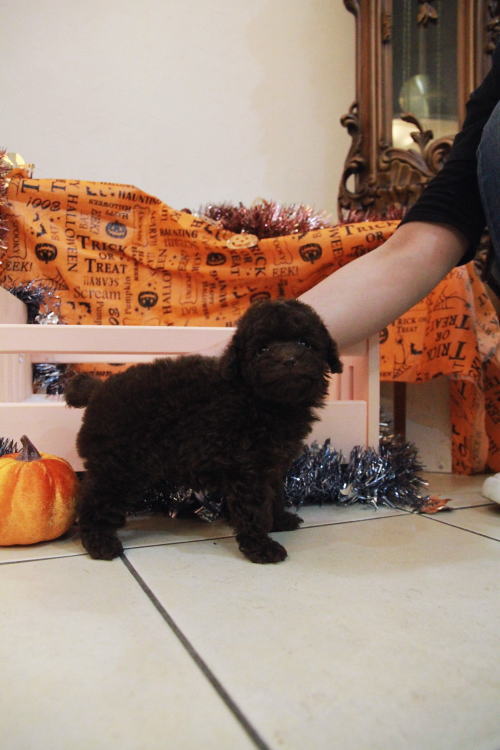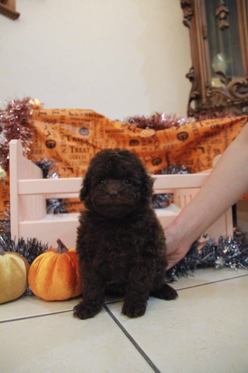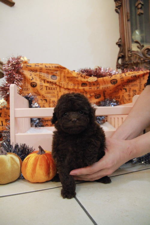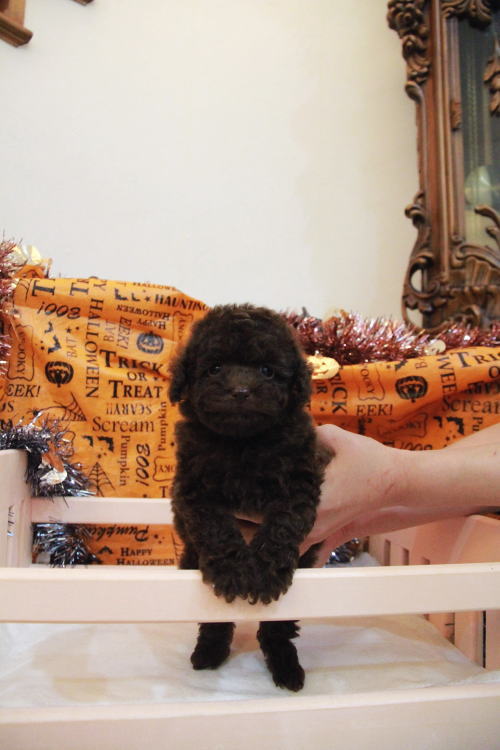 ★目が真ん丸で可愛いブラウンちゃん★ PRA発症しません。 成犬時の予想サイズが1.6kg位のティーカップサイズ予想の女の子です。 差し毛やミスカラーはありません。 撮影で鼻の色が薄く見えますが、とても濃い色素をしています!! フレンドリーな性格の子で、他の子犬達ととても仲良く遊んで生活しています♪ 目がクリクリしていて、顔のとても可愛い子で、ゴリラ顔ではありません。どちらかと言うとリス猿の様な可愛らしい顔つきのタイプです。 欠点など無しとなります。 毛量はとにかく豊富で、密度がとてもあります。 色味はとても濃いビターブラウンになります。 健康診断とワクチンが済んでおり、11月1日よりお引き渡し可能です。 飼育の事やトリミングの事など、ご不安な点も、子犬の購入後の手続きの際に一つずつ丁寧にご指導いたしております。 ご安心して、お気軽にお問い合わせ下さいませ。 表示価格は現金特価となっております。 カードでお支払いのお客様は577,500円(税抜525,000円)でございます。 当社で飼育の際に実際に使用しているゲージやトイレなどの生活用品の一式がセットになって37,800円の飼育セットの御用意がございます。 犬種ごとに選択いただくゲージも違いますので、初めての方は、ワンちゃんの購入の際に、同時に飼育セットをお持ち帰りいただく事をオススメしております。 ワンちゃんも使い慣れているので、不安無く新しい生活がスタート出来ると思います。 |