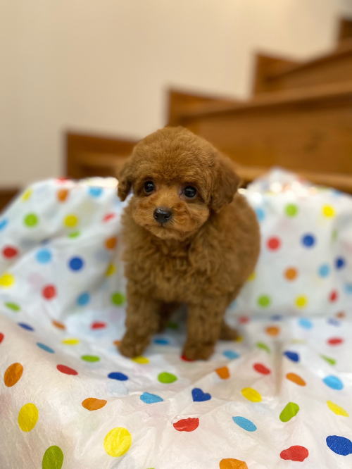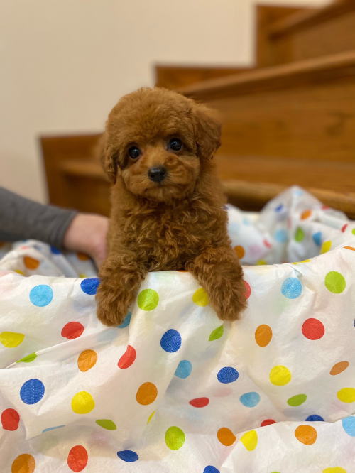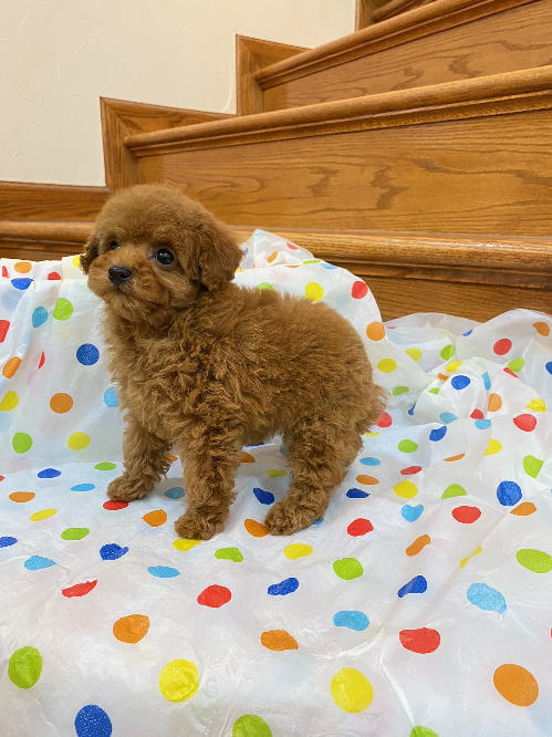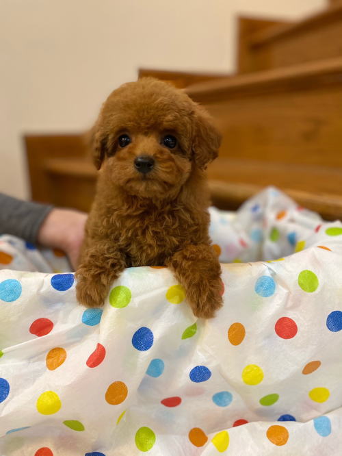 ★目がクリクリで可愛いティーカップちゃん★ 成犬時の予想サイズが1.8kg位のティーカップサイズに仕上がりそうです。 顔が丸顔でとっても可愛くて、目がクリクリしていて大きく、マズルがとても詰まっている子です。 体型も真ん丸くズングリムックリとしていて可愛らしい形をしています。 毛色は綺麗なレッドカラーで、毛量は素晴らしく抜群にあります。 写真では明るさ調整によって、毛色が薄く見えています。 1回目のワクチン接種と健康診断が終わっており、すぐにお引き渡しが可能です。 飼育の事やトリミングの事など、ご不安な点も、子犬の購入後の手続きの際に一つずつ丁寧にご指導いたしております。 ご安心して、お気軽にお問い合わせ下さいませ。 表示価格は現金特価となっております。 カードでお支払いのお客様は519,750円(税抜472,500円)でございます。 当社で飼育の際に実際に使用しているゲージやトイレなどの生活用品の一式がセットになって37,800円の飼育セットの御用意がございます。 犬種ごとに選択いただくゲージも違いますので、初めての方は、ワンちゃんの購入の際に、同時に飼育セットをお持ち帰りいただく事をオススメしております。 ワンちゃんも使い慣れているので、不安無く新しい生活がスタート出来ると思います。 |